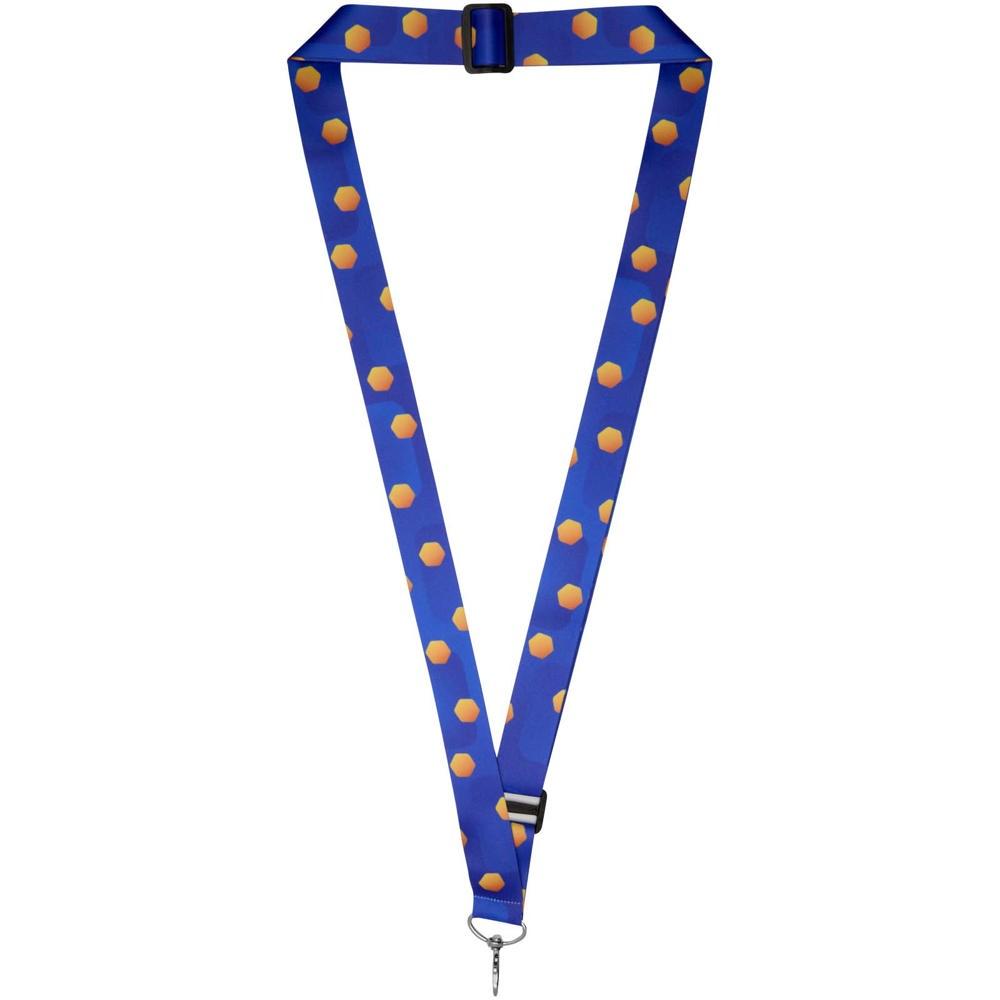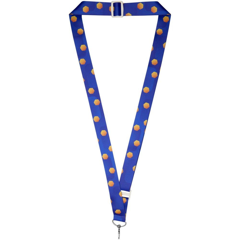 Elevate your brand visibility with the Liv Adjustable Sublimation Lanyard, the ideal customizable solution for events, conferences, and promotional giveaways. Featuring a convenient sliding buckle for effortless length adjustment and a robust metal hook that securely holds name badges, ID cards, or keys, this lanyard ensures practicality and professionalism for every recipient.