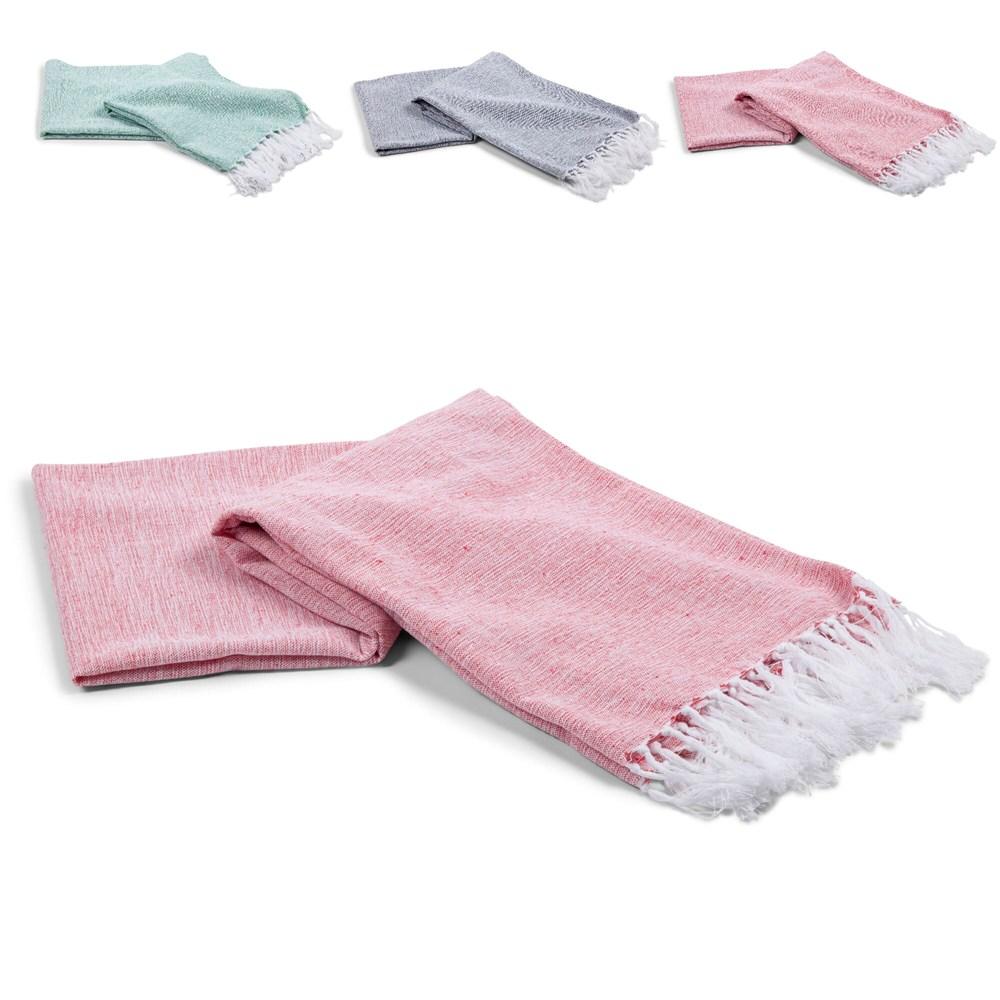 Elevate your promotional giveaways with this premium hammam towel, crafted from 70% recycled cotton for an eco-conscious choice that appeals to sustainability-focused clients. Its stylish fringes and mottled weave from colored threads blended with white create a sophisticated, unique look perfect for branding.