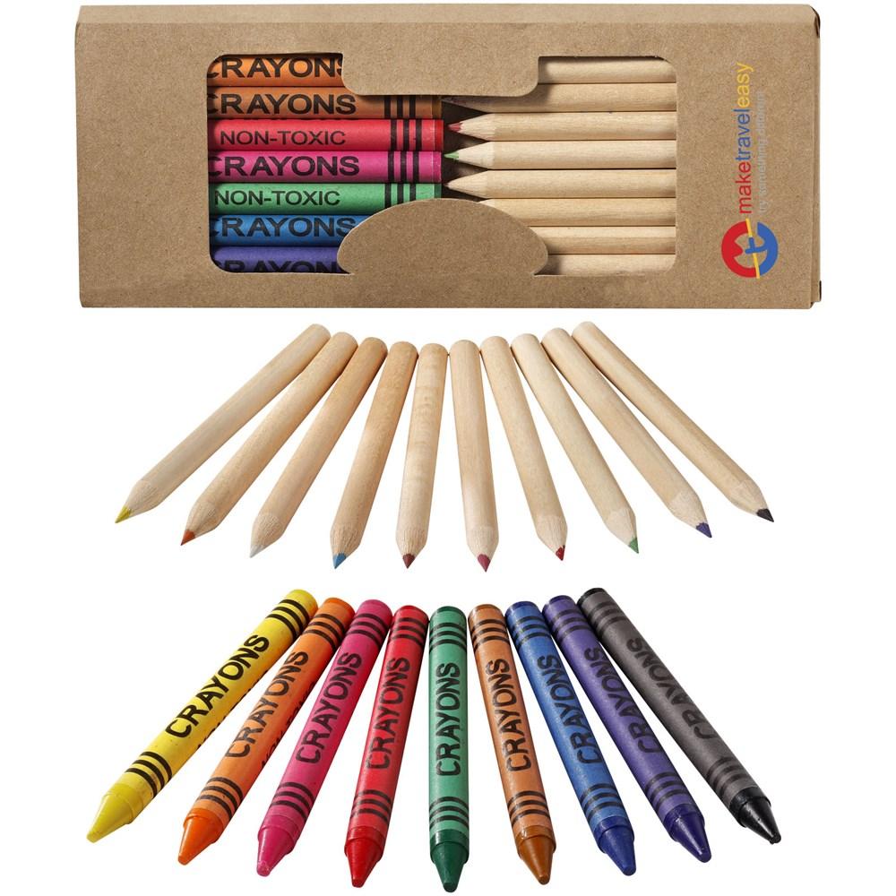 Elevate your promotional giveaways with this compact 19-piece set, featuring 9 wax crayons and 10 pencils neatly packed in a sturdy carton box with a clear plastic window for easy visibility. Ideal for marketing teams and event organizers seeking fun, family-friendly items to delight clients and boost brand recall.