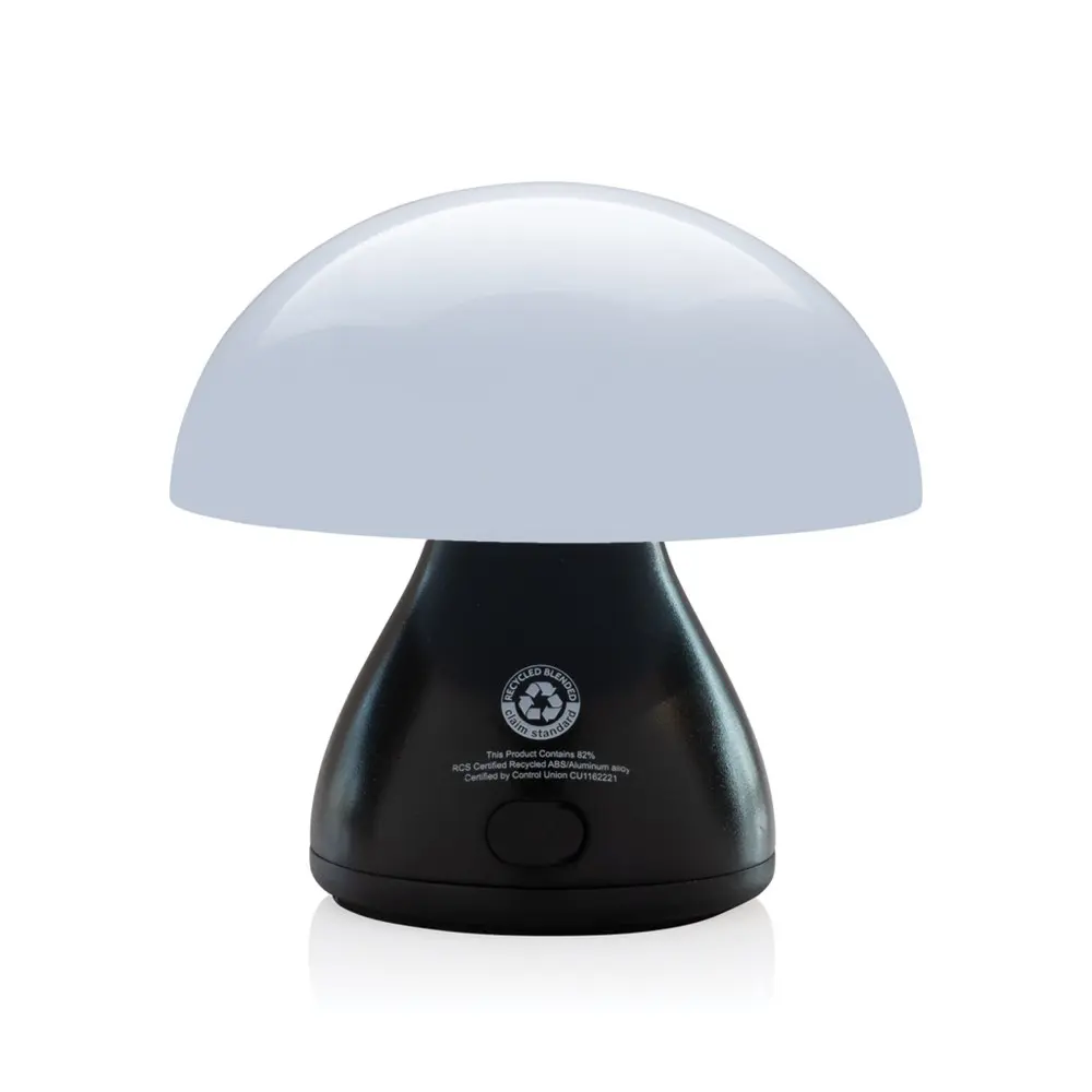 Elevate your brand's image with this sustainable, portable table lamp, perfect for promotional giveaways at events or client appreciation gifts. Crafted from RCS certified recycled ABS and aluminum, it boasts 84% total recycled content, ensuring a transparent, eco-certified supply chain. This makes it an ideal choice for environmentally conscious marketing campaigns, allowing your company to showcase commitment to sustainability while promoting your logo through custom imprinting.