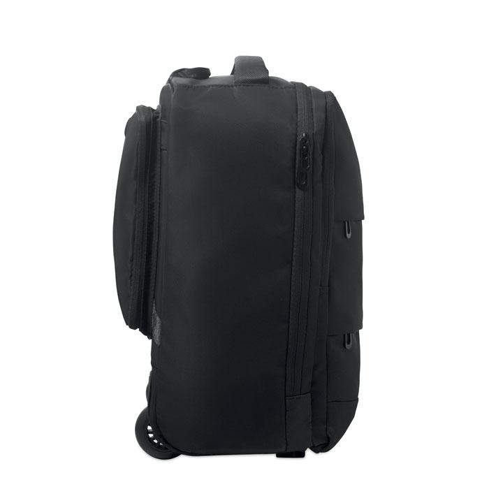 Elevate your brand visibility with the MAGNATE Backpack Trolley in 290T RPET, crafted from sustainable recycled polyester for eco-friendly promotion. This versatile 3-in-1 design combines backpack comfort, trolley mobility, and ample storage, featuring three front zip pockets, a padded compartment for up to 15-inch laptops, and a dedicated zippered cooling section ideal for keeping refreshments fresh during events.