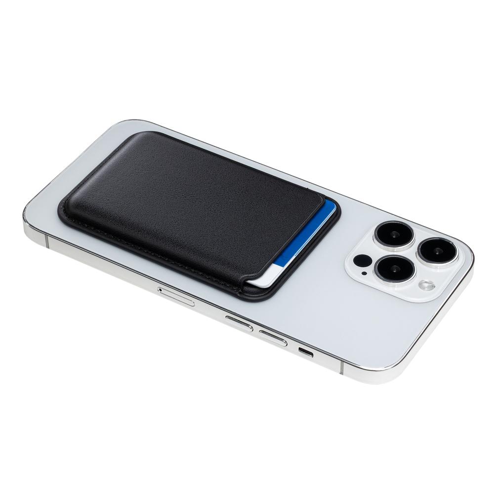 Replace bulky traditional wallets with the innovative Magnetic Wallet RE98-LEFTA, a sleek cardholder designed for modern contactless lifestyles. Crafted from premium faux leather, it securely holds up to two standard cards (0.8mm thick) and attaches effortlessly to MagSafe®-compatible smartphones via its powerful magnetic system, complete with a self-adhesive metal ring for reliable hold.