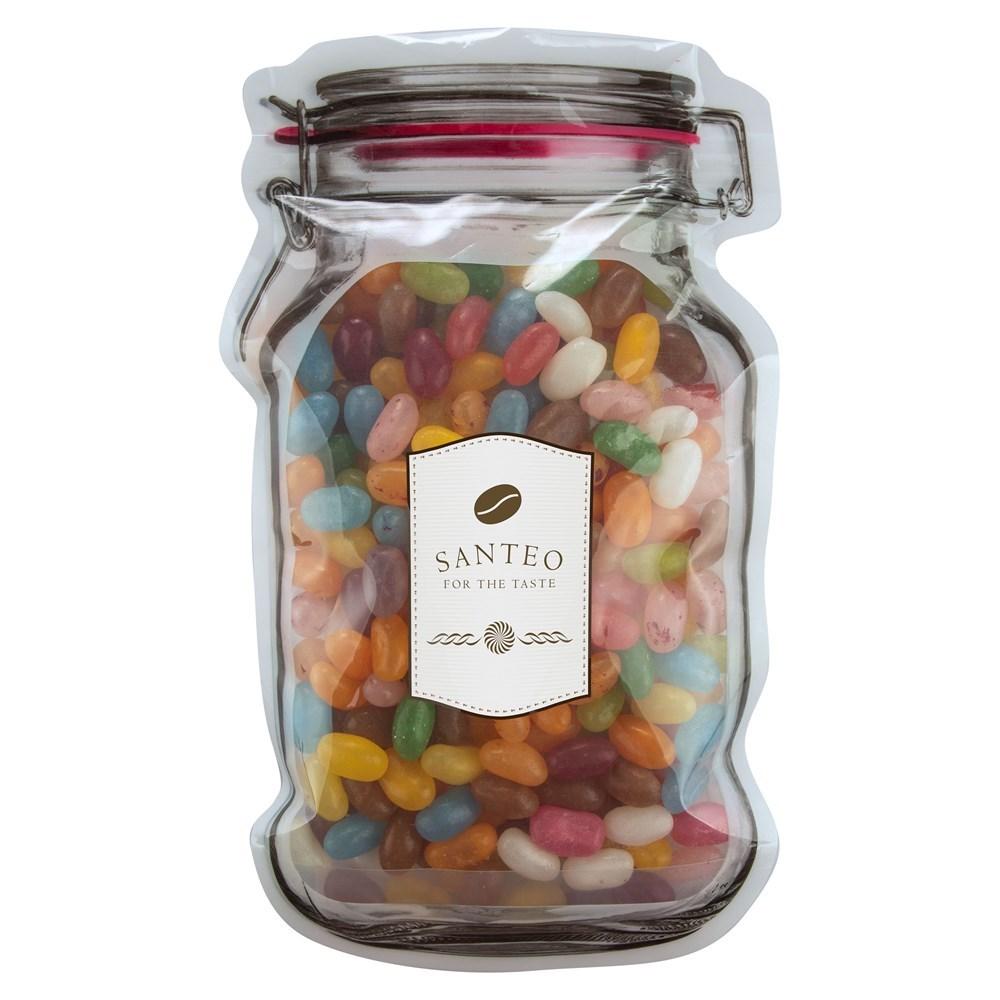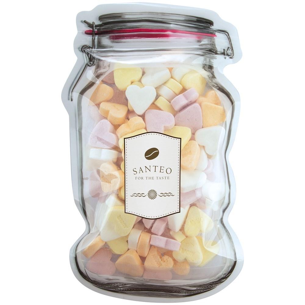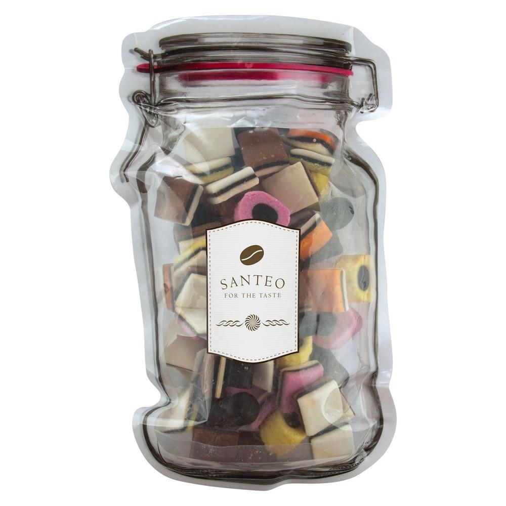 Elevate your brand visibility with this spacious maxi glass jar, perfectly suited for mailing and gifting. Featuring a full-color sticker on the front for your custom logo or design, it arrives pre-filled with a delightful mix of licorice sticks – an irresistible treat that keeps your brand top-of-mind.