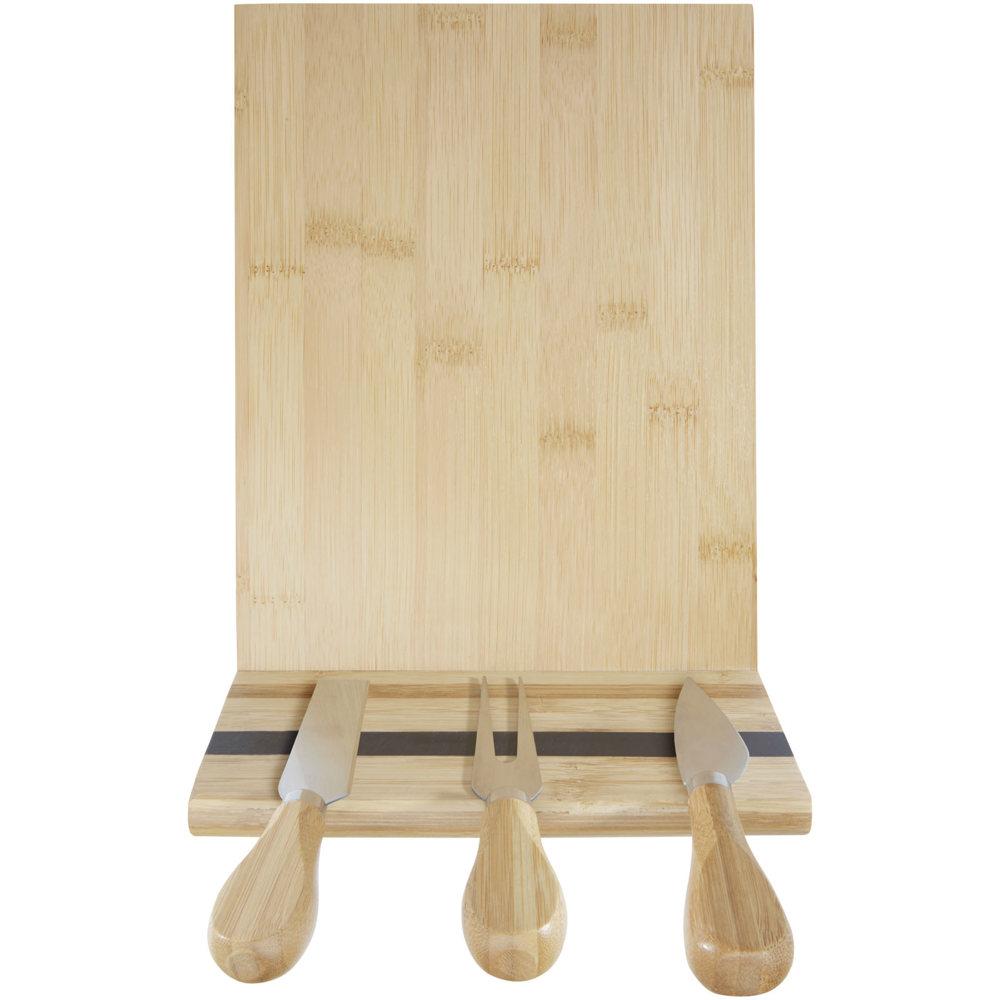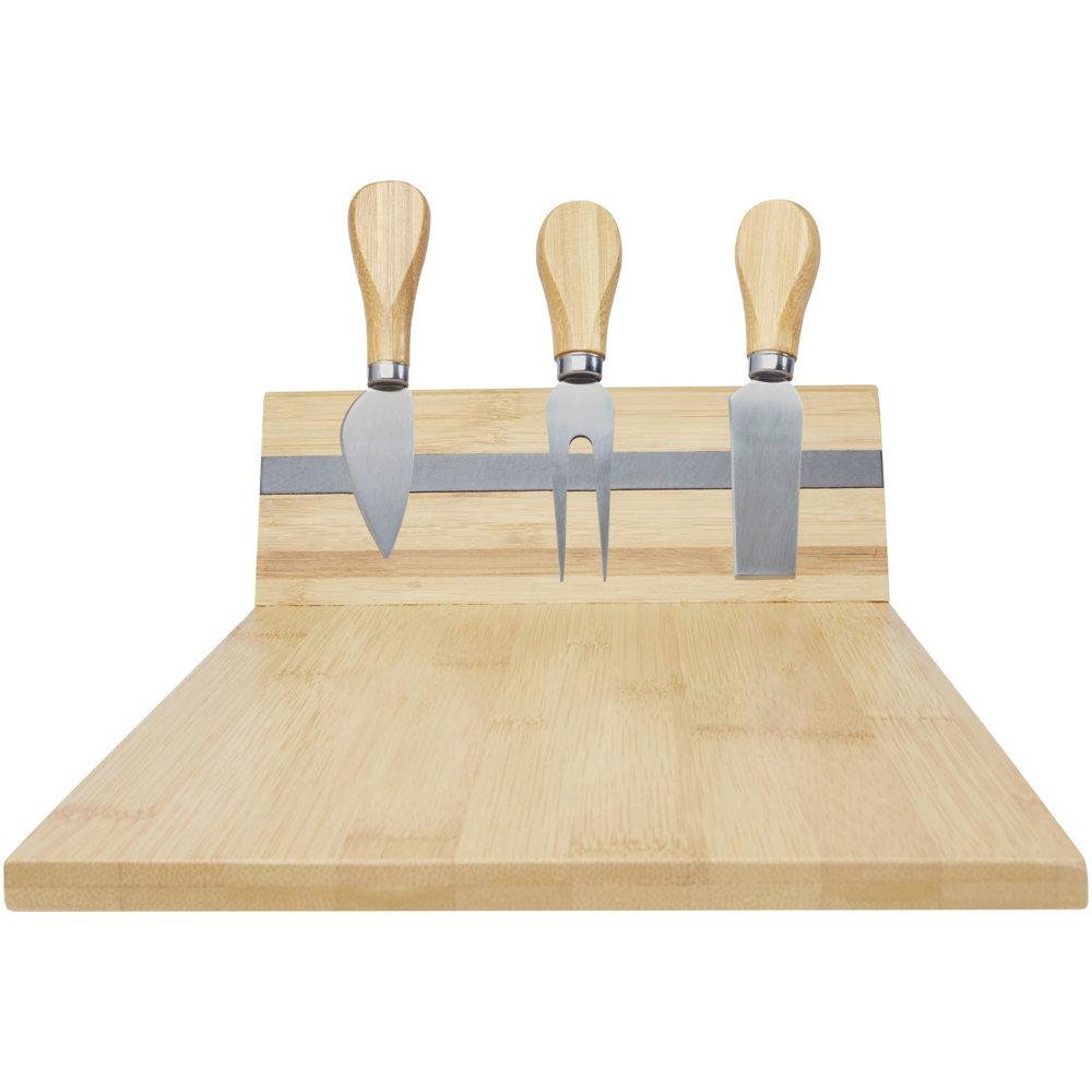 Elevate your brand's presence at events and corporate gatherings with the Mancheg Bamboo Magnetic Cheese Board and Tools, a premium personalized cheese set ideal for logo branding. Crafted from sustainably sourced bamboo, this stylish set features a spacious cheese board (30 x 20.2 x 7.6 cm), two precision cheese knives (12.5 x 2.5 cm and 12.5 x 2.7 cm), and a handy cheese fork (13.5 x 2.4 cm).