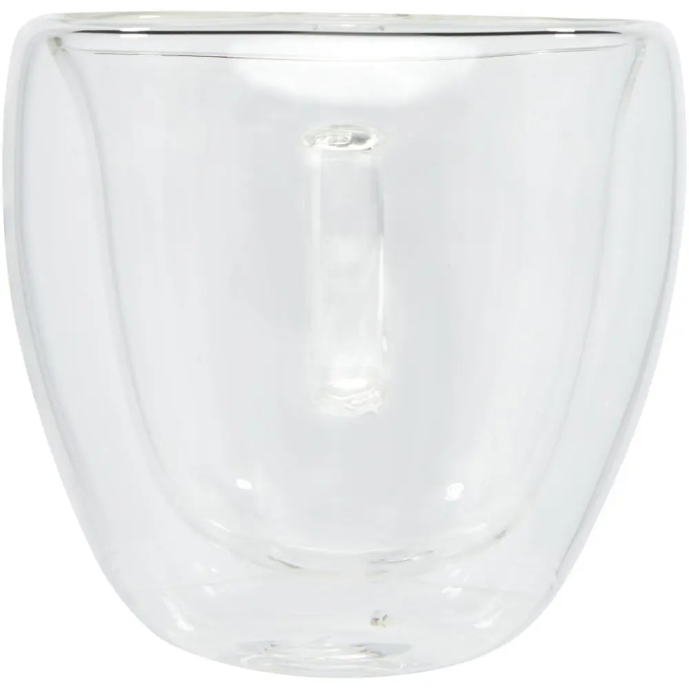 Elevate your brand with the Manti 2-piece 100 ml double-wall glass cup set, featuring a sustainable bamboo coaster. Crafted from premium borosilicate glass, these thermal glasses insulate beverages to keep drinks hot or cold for extended periods, ensuring a superior sipping experience at events or client meetings.
