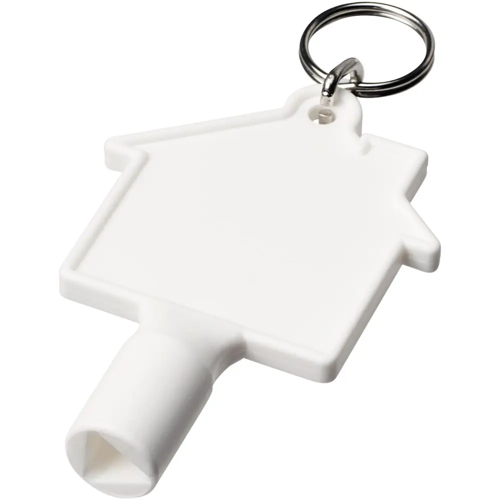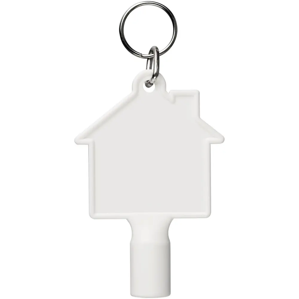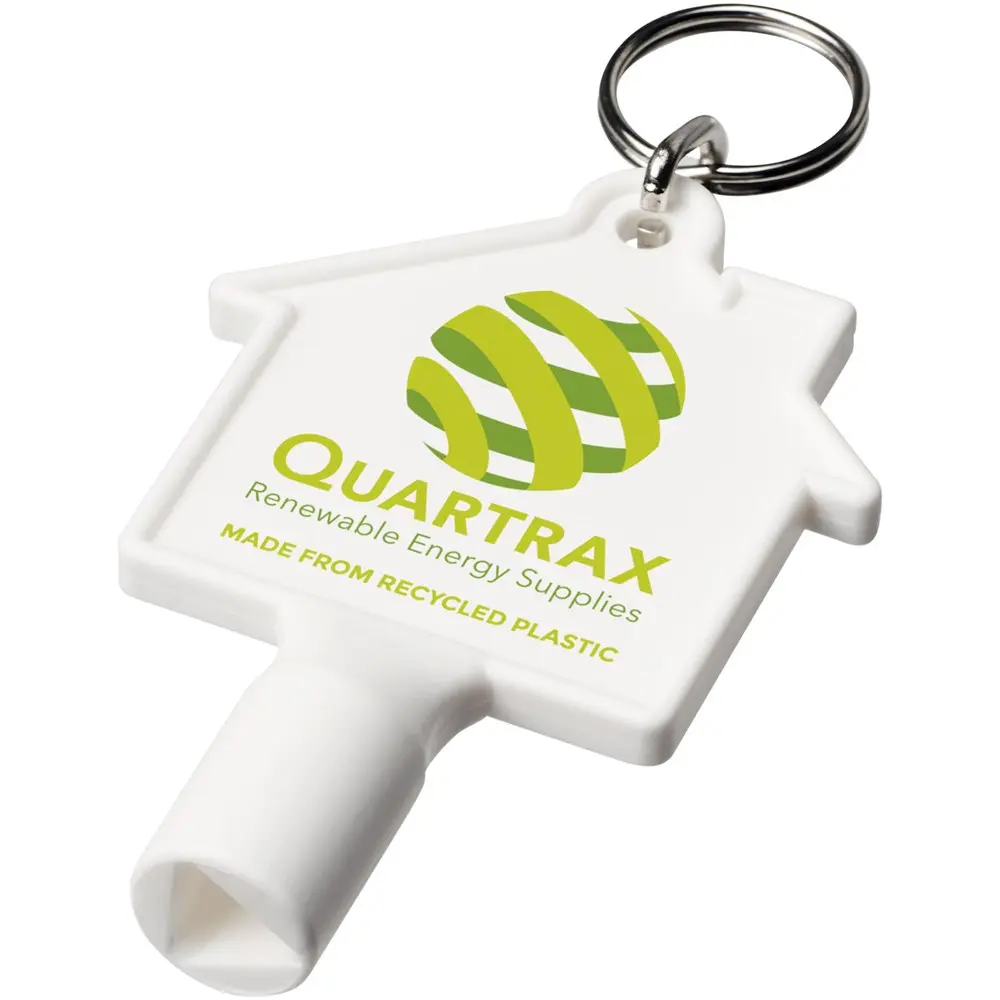 Elevate your brand's visibility with the Maximilian house-shaped recycled utility key keychain, a practical and eco-friendly promotional tool perfect for marketing professionals and event organizers. Crafted from recycled HIPS plastic with a durable metal ring, this keychain features a triangular 8mm opening designed for easy access to meter boxes and street poles.