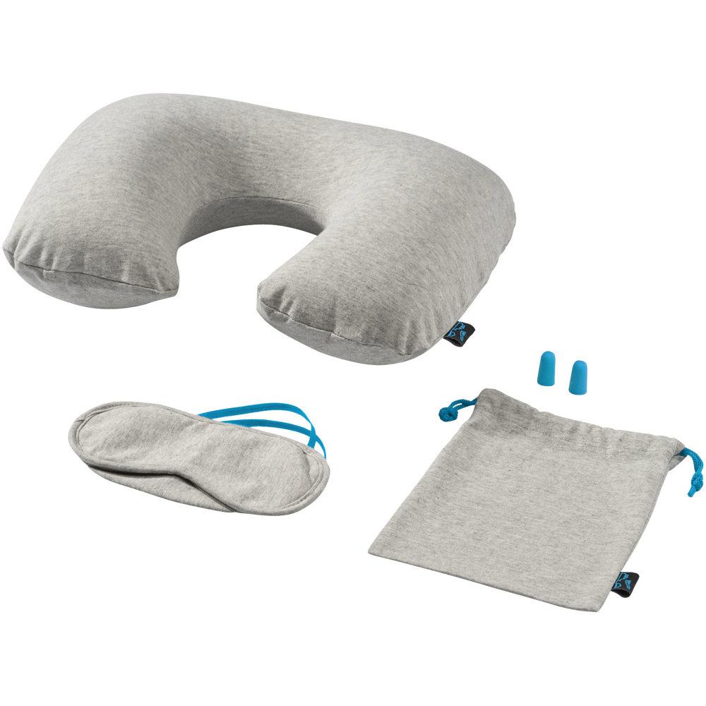 Elevate your brand with the Miami travel set, a premium promotional giveaway designed for marketing professionals and event organizers. This compact kit features an inflatable neck pillow for superior comfort during long journeys, a soft eyemask to ensure restful sleep, noise-reducing earplugs for undisturbed relaxation, and a convenient drawstring pouch for easy portability.