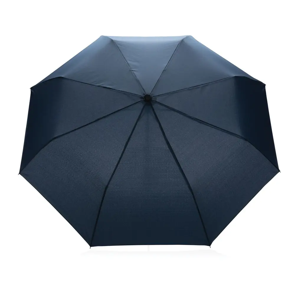 Elevate your brand's eco-conscious image with the Miba foldable manual umbrella, featuring a sustainable bamboo handle for a natural touch. Crafted from 190T RPET pongee fabric derived from 7.6 recycled 500ml PET bottles, it guarantees genuine sustainability via AWARE™ tracer and blockchain technology, reducing water use compared to conventional fibers. This portable 3-section mini umbrella opens manually to a 108 cm diameter, perfect for on-the-go protection during events or daily commutes.