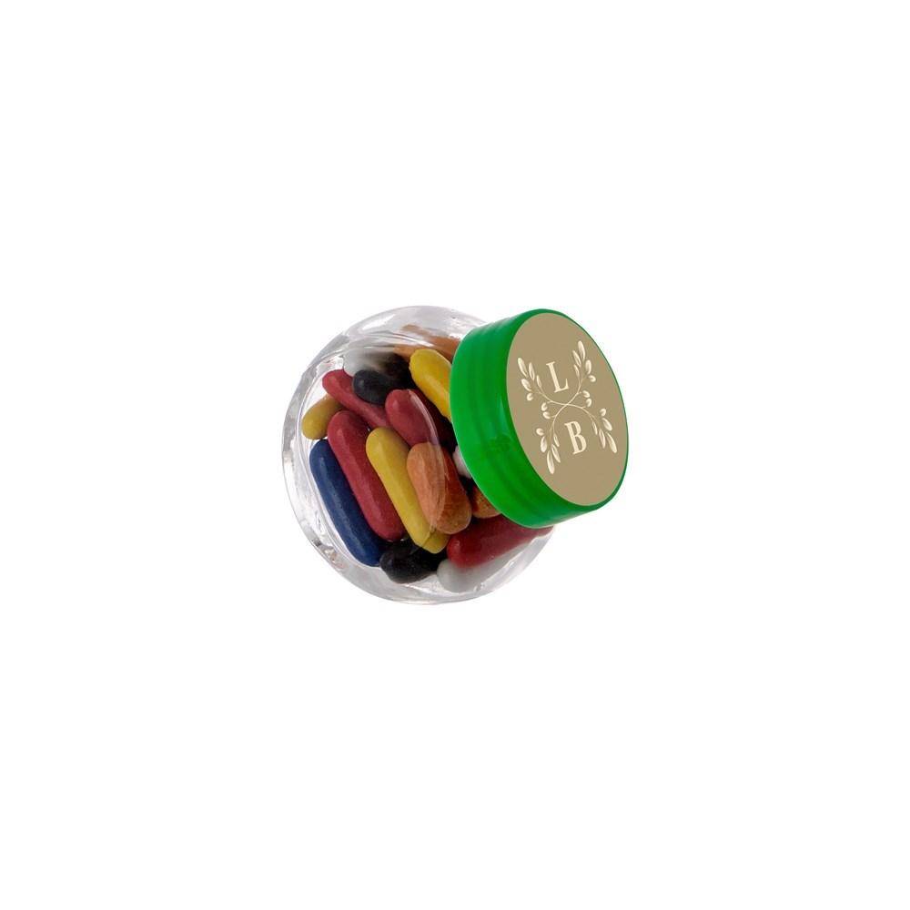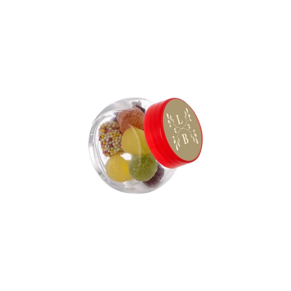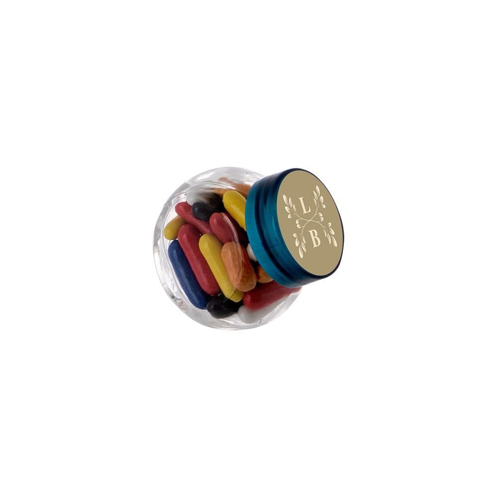 Elevate your promotional giveaways with these compact 50 ml glass jars, perfectly filled with a delightful mix of licorice sticks. Each jar features a full-color printed sticker on the lid, ideal for showcasing your company logo or event branding via personalization techniques.