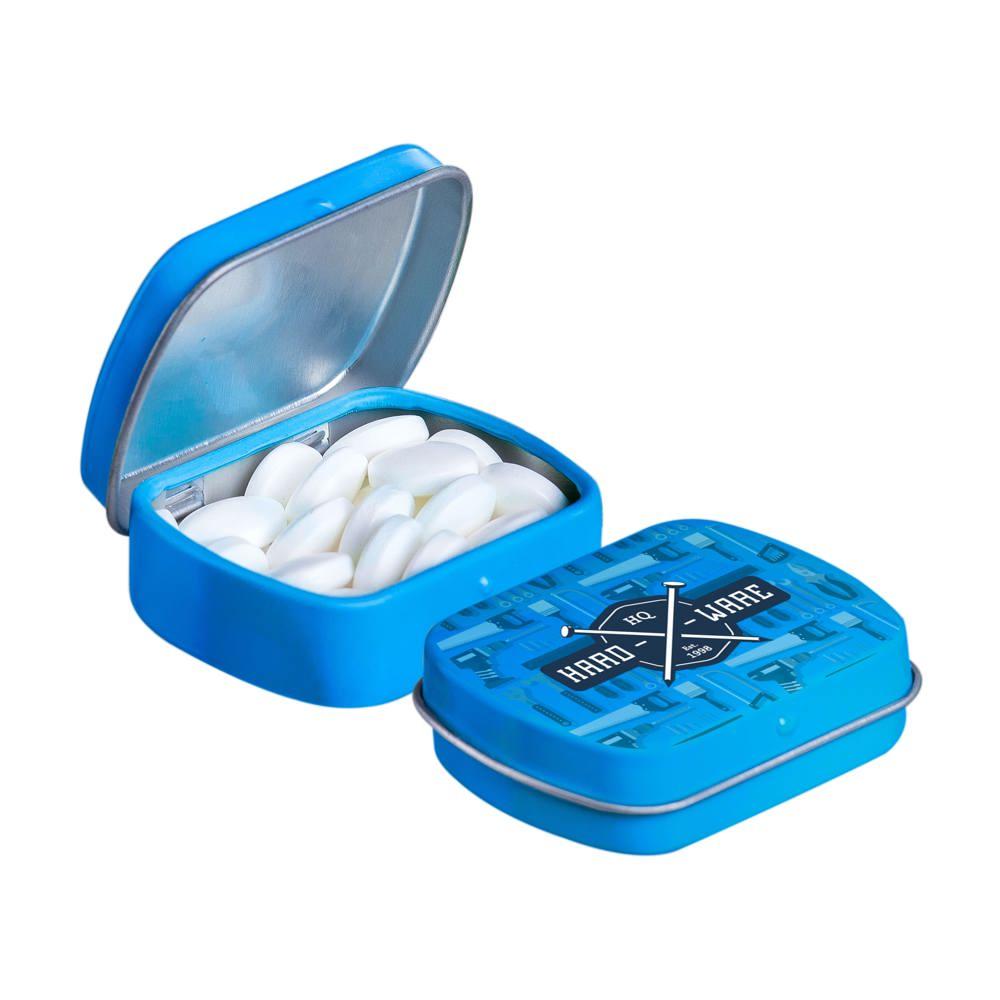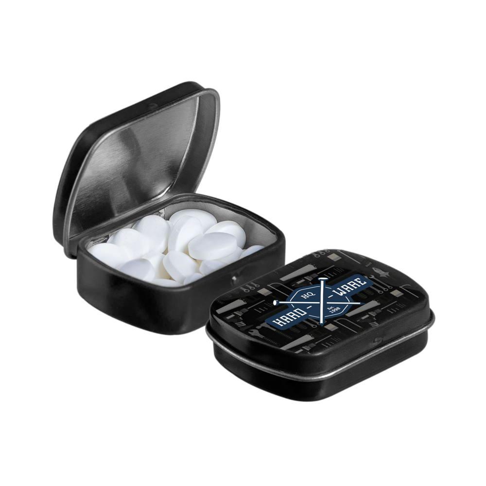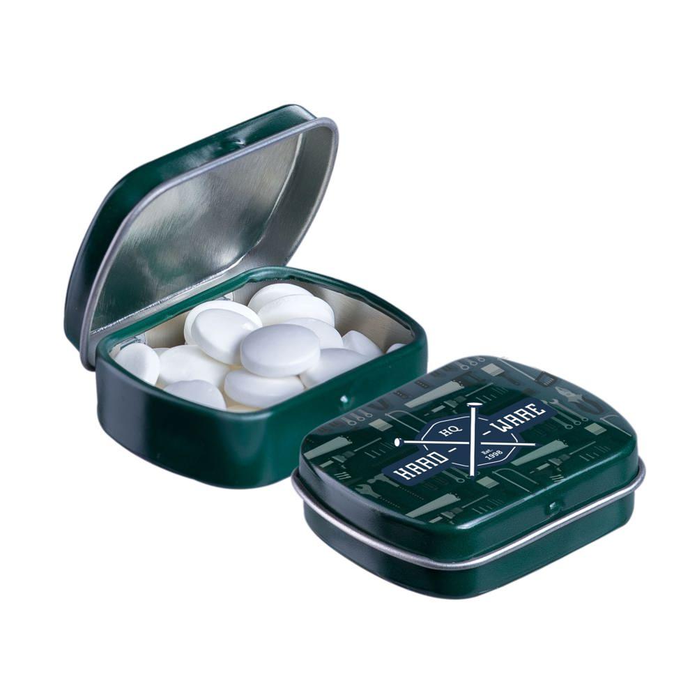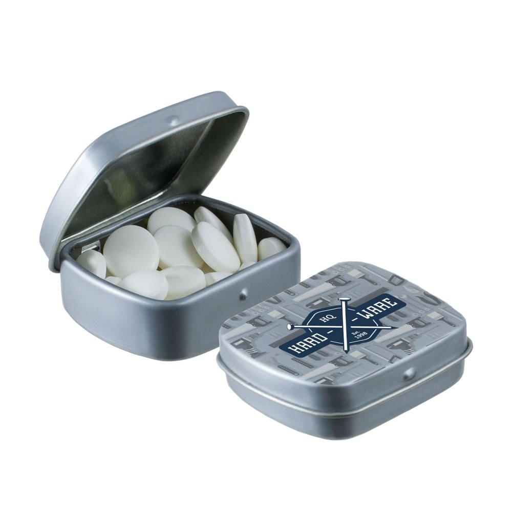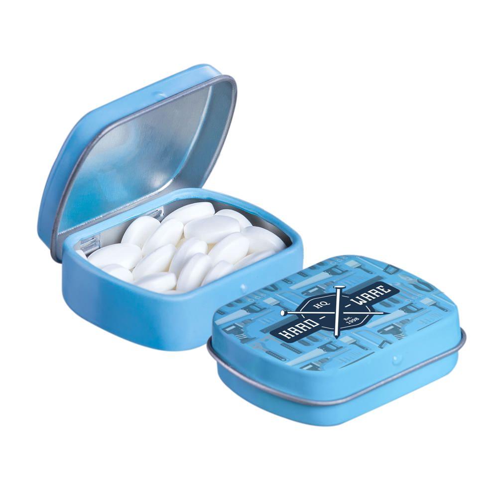 Elevate your brand visibility with our personalized Micro Hinged Tin, a compact promotional giveaway perfect for marketing campaigns and events. Filled with approximately 9 grams of refreshing mints, each tin features an ingredients sticker and secure seal for compliance and freshness.