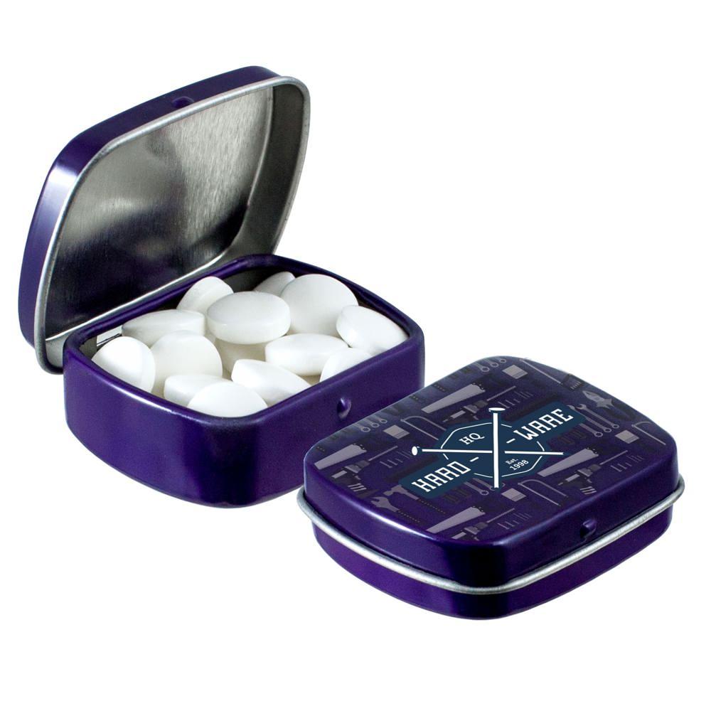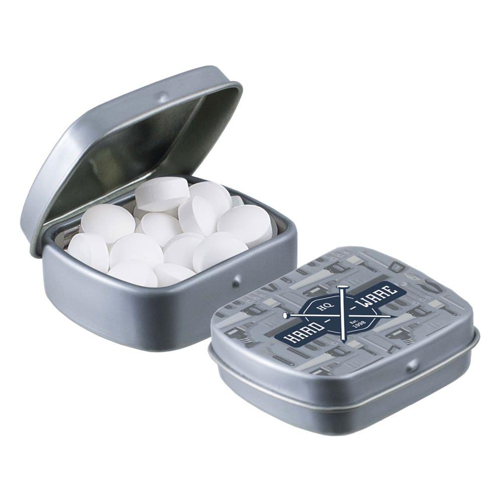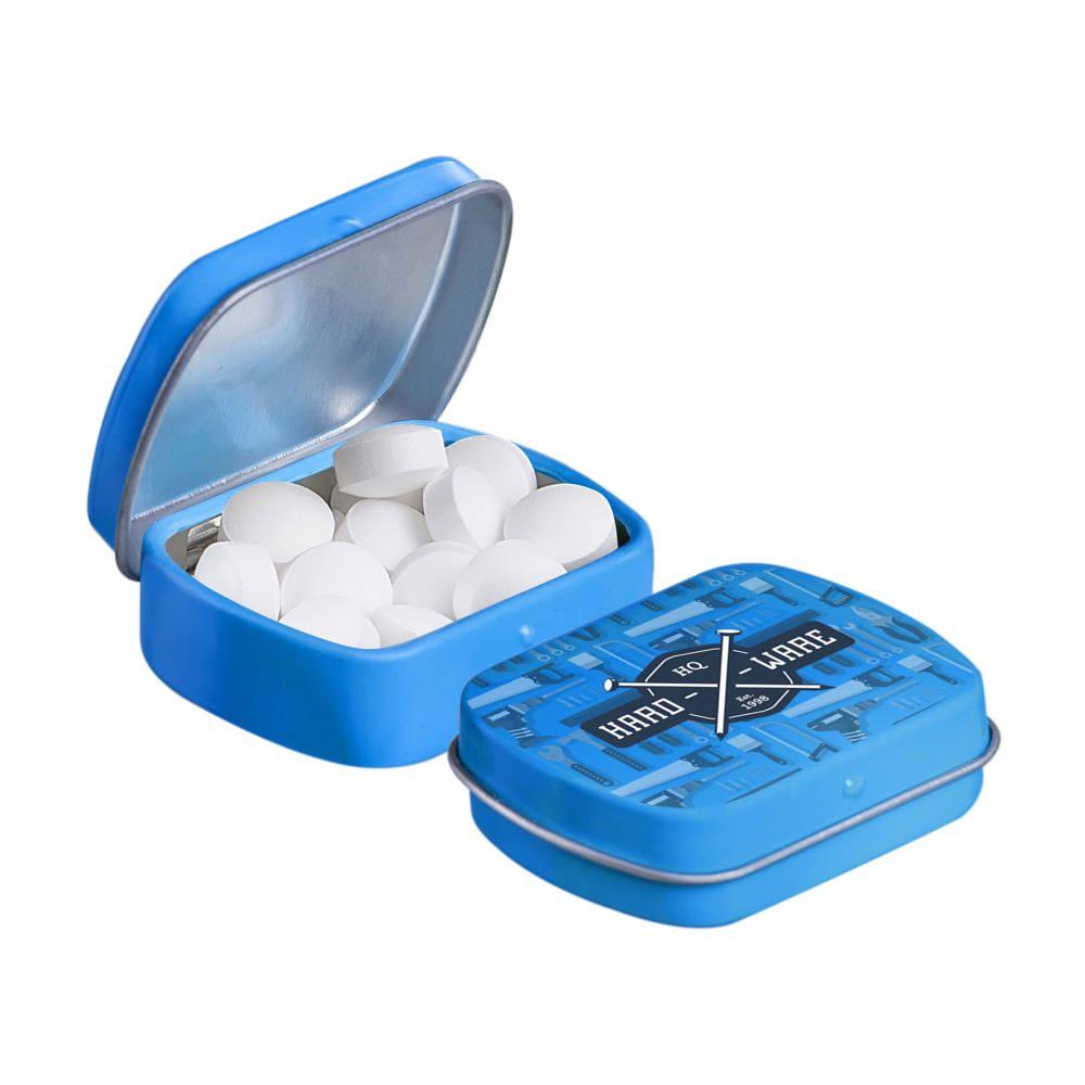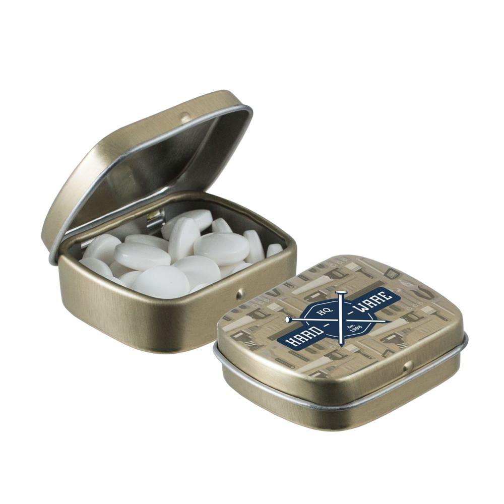 Elevate your brand visibility with our personalized Micro Hinged Tin, a compact promotional giveaway perfect for marketing campaigns and events. Filled with approximately 9 grams of refreshing mints, each tin features an ingredients sticker and secure seal for compliance and freshness.
