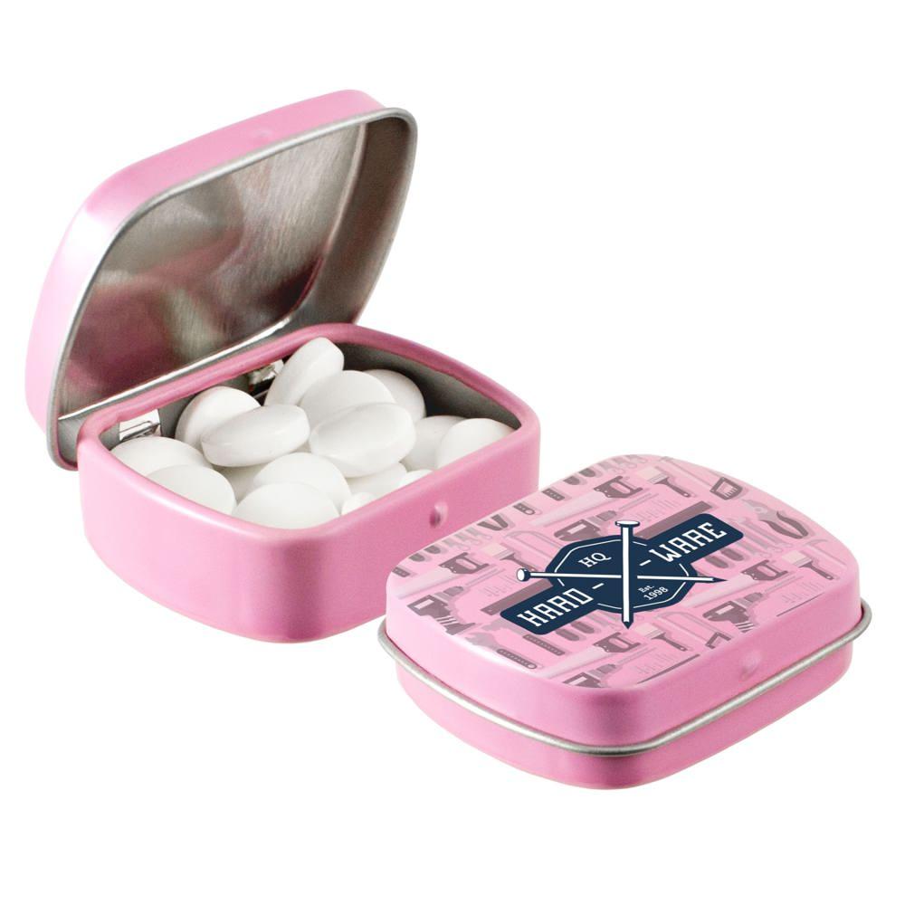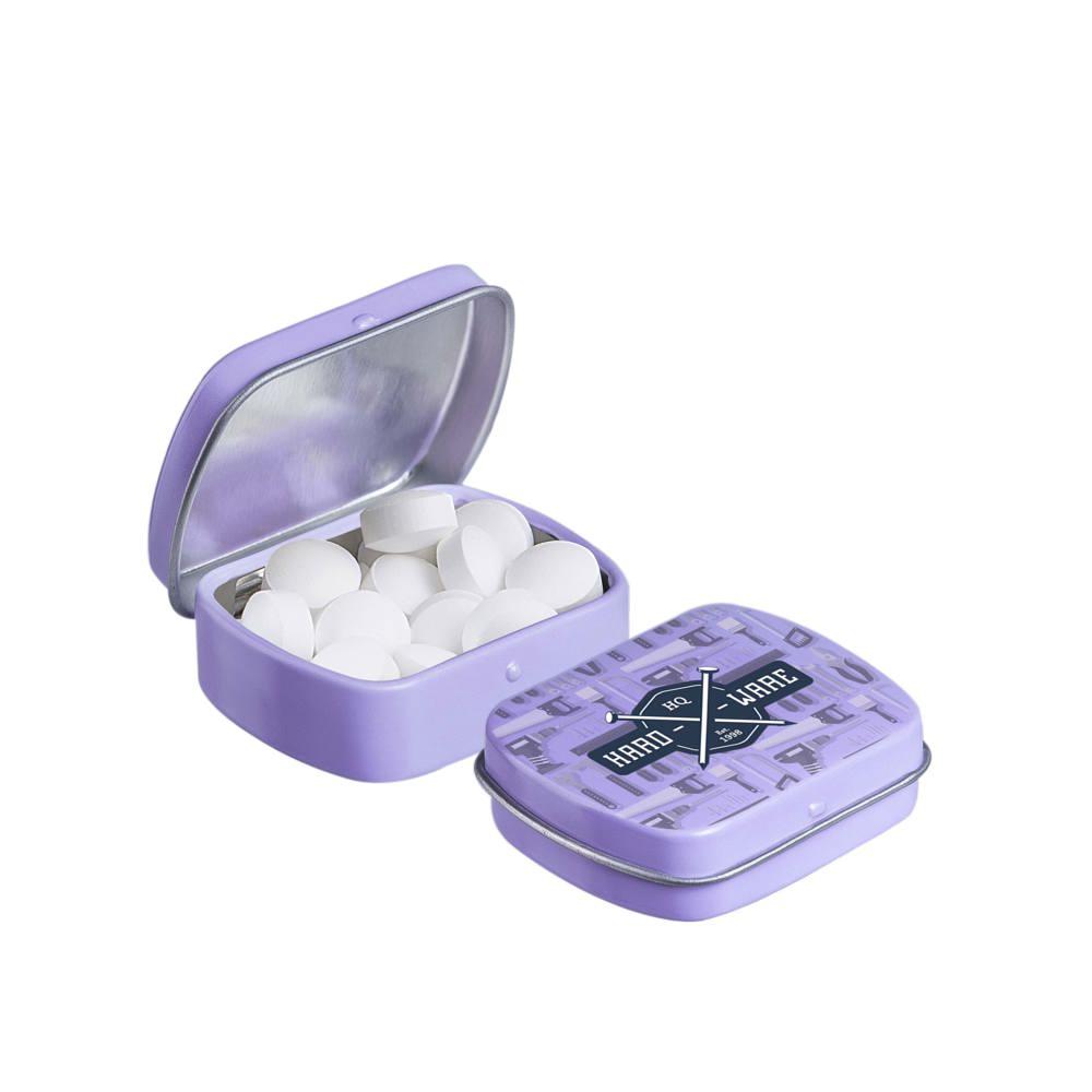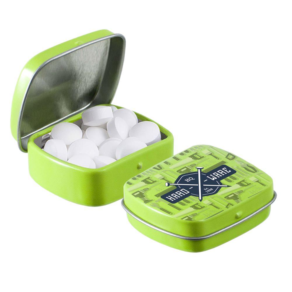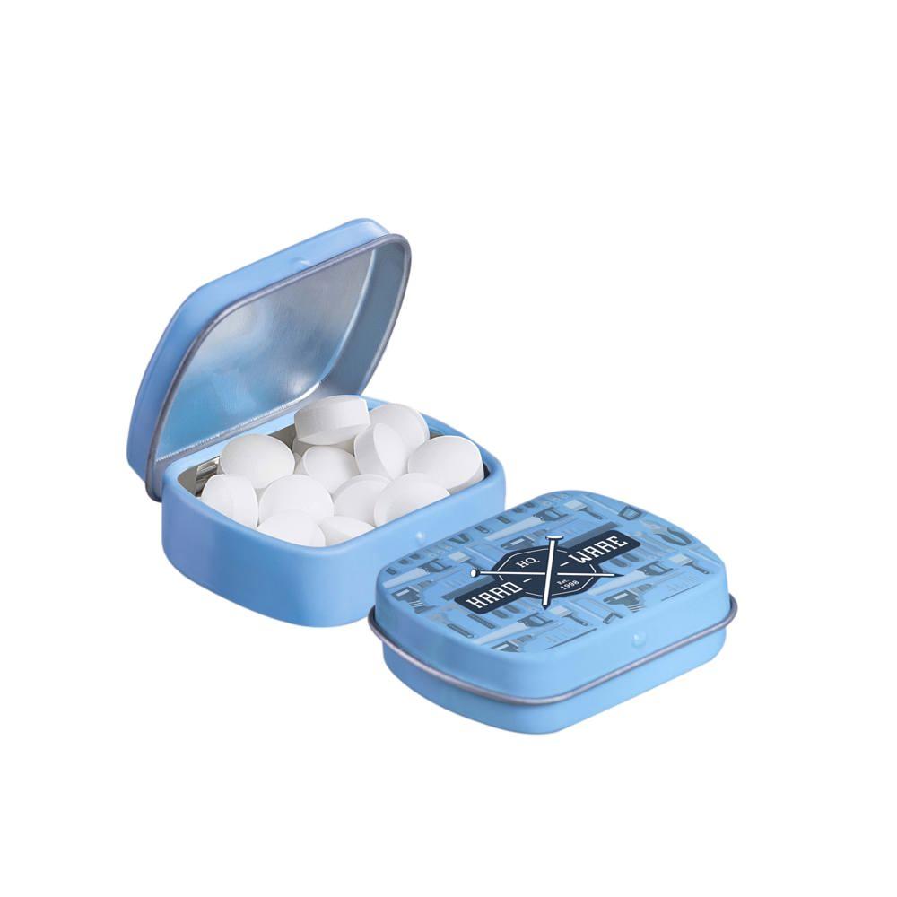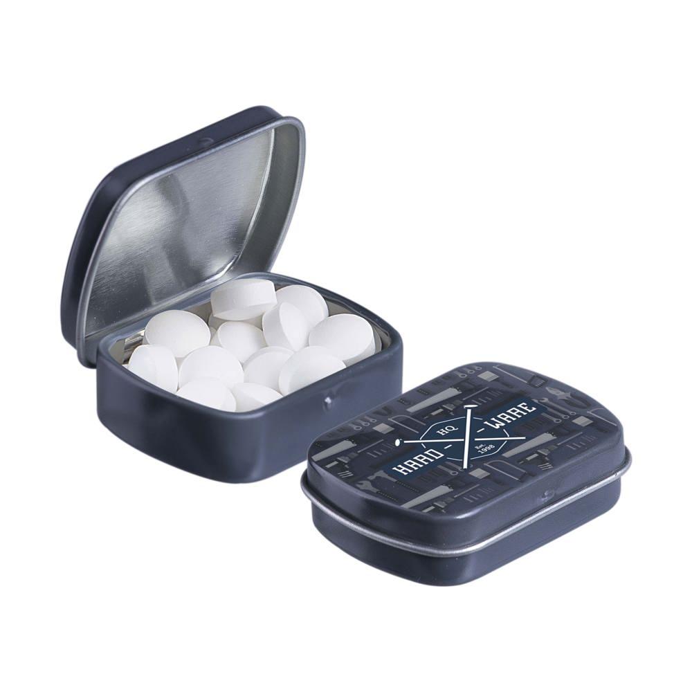 Elevate your brand visibility with our personalized Micro Hinged Tin, a compact promotional giveaway perfect for marketing campaigns and events. Filled with approximately 9 grams of refreshing mints, each tin features an ingredients sticker and secure seal for compliance and freshness.