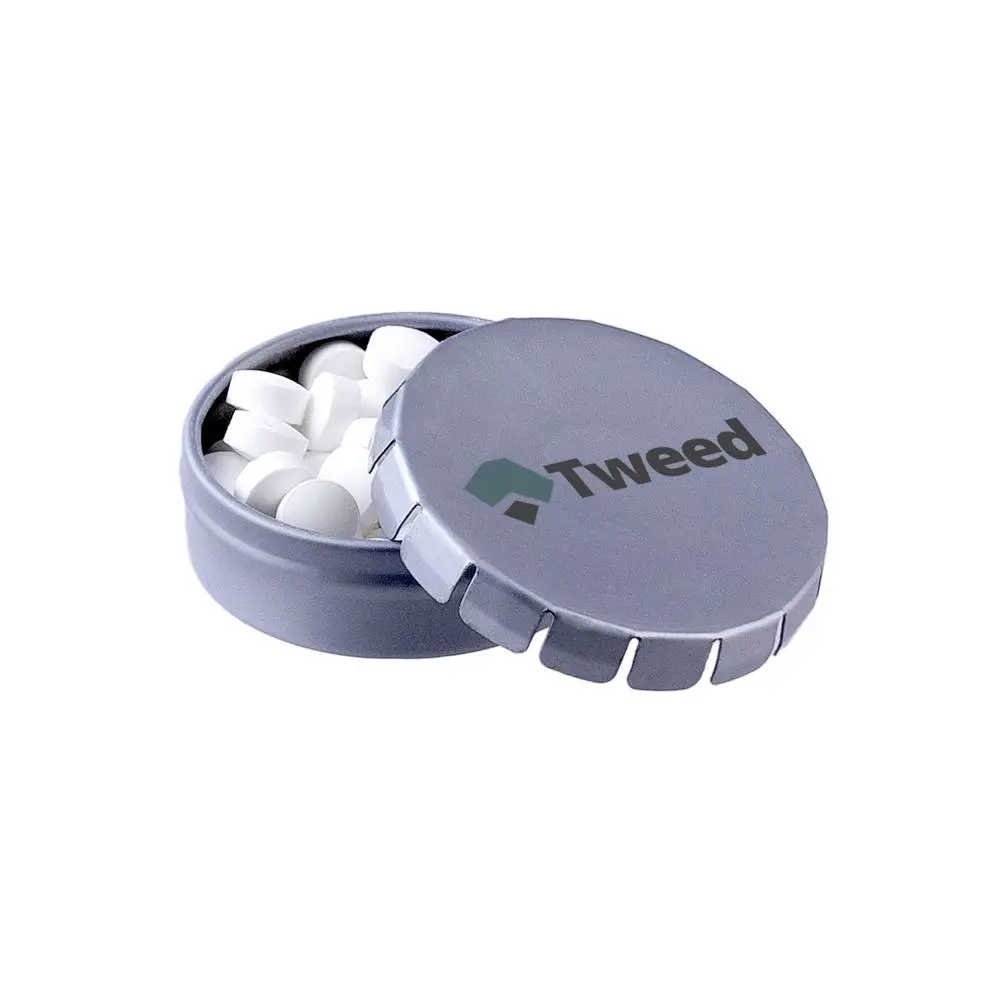 Elevate your promotional giveaways with our Micro Mini Clic-Clac Tin, a compact tin container made from durable metal, measuring just 37mm in diameter. Filled with approximately 5 grams of refreshing mini mints, it includes an ingredients sticker and secure seal for quality assurance. Ideal for marketing professionals and event organizers, these personalized tins offer endless branding opportunities—add your logo via custom printing to create memorable handouts that keep your company top-of-mind. Their pocket-friendly size ensures easy distribution at events, tradeshows, or client meetings, promoting fresh breath while subtly reinforcing your brand message. Boost engagement and loyalty with this practical, high-visibility promotional tool that combines convenience and customization for maximum impact.