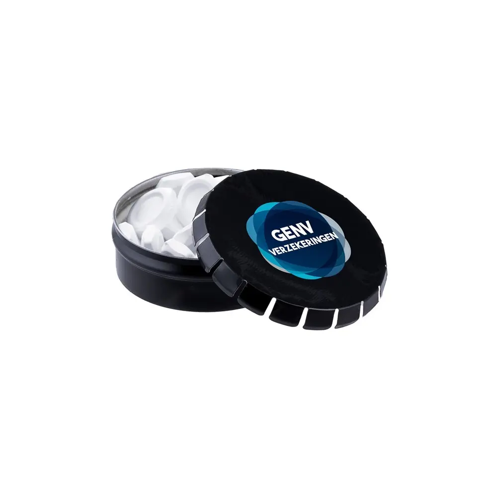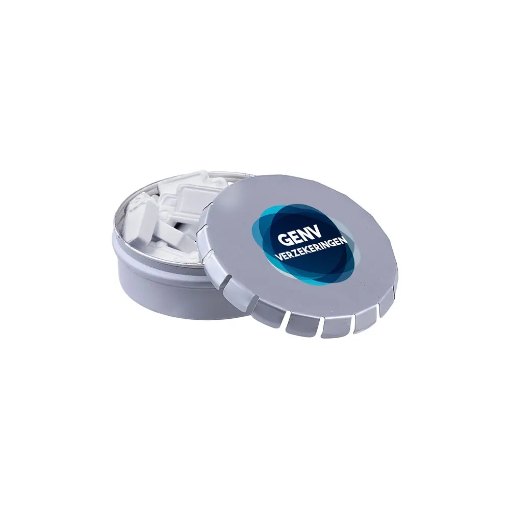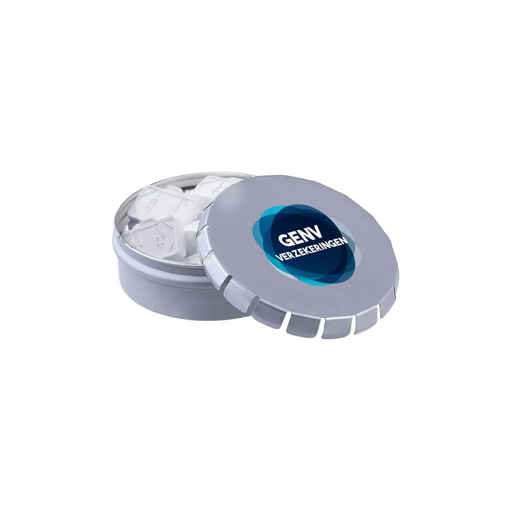Perfect for event organizers and marketing teams, this tin offers a practical way to distribute fresh mints to clients and attendees. Its click-clack mechanism provides easy access, encouraging repeated use and extended brand exposure. Lightweight and pocket-friendly, it serves as an affordable yet effective advertising solution that delights recipients and boosts your promotional strategy.