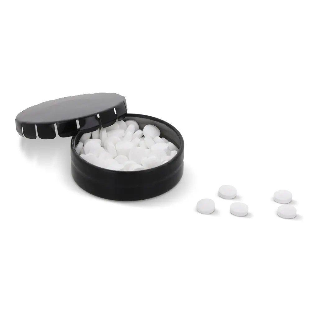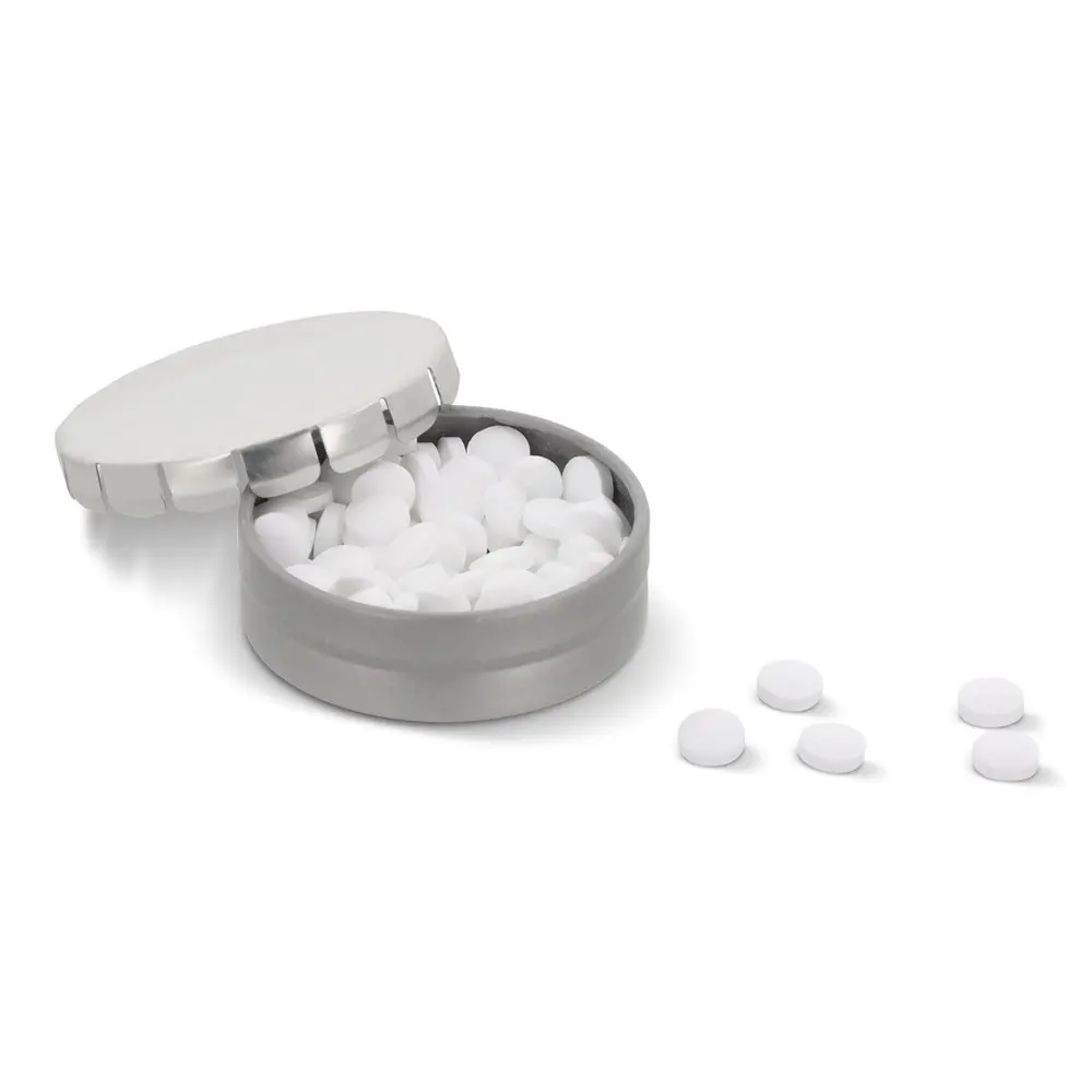 Elevate your brand with our Mini Clic Tin Box, filled with refreshing sugarfree peppermints. These compact 47mm diameter tins offer a stylish, portable solution for promoting your business at events or as client giveaways. Customize with your logo for standout visibility and memorable impressions. Benefit from Amfori BSCI compliance, ensuring ethical sourcing that aligns with corporate values. Provide instant freshness and convenience, keeping your recipients energized while reinforcing your message—ideal for marketing pros and event organizers seeking effective, bulk-personalized promotional tools.