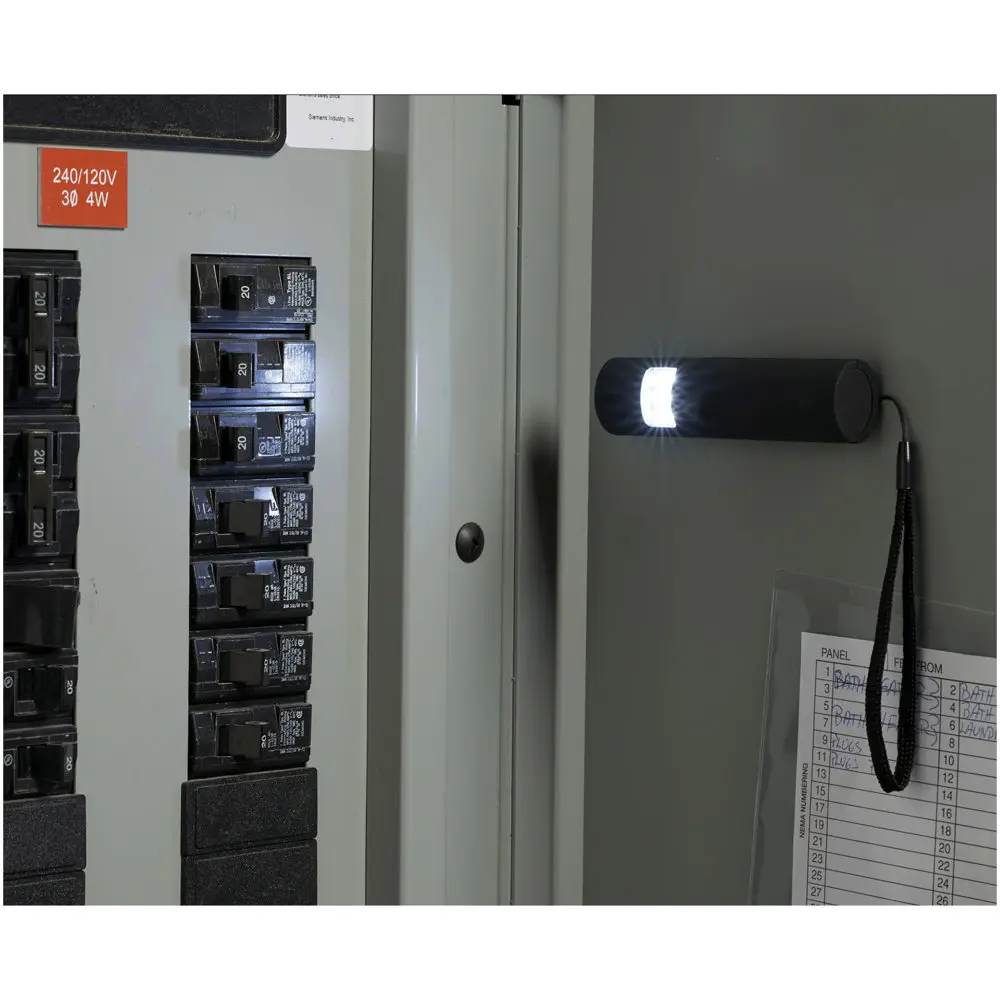 Ideal for hands-free use, its strong magnetic back attaches securely to metal surfaces, making it a practical tool for technicians, outdoor enthusiasts, or emergency situations. The included nylon carrying strap ensures easy portability, while the simple push-button operation adds convenience.