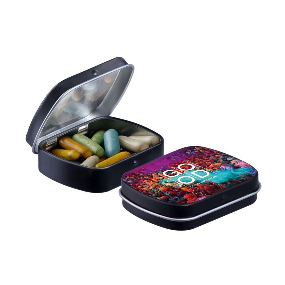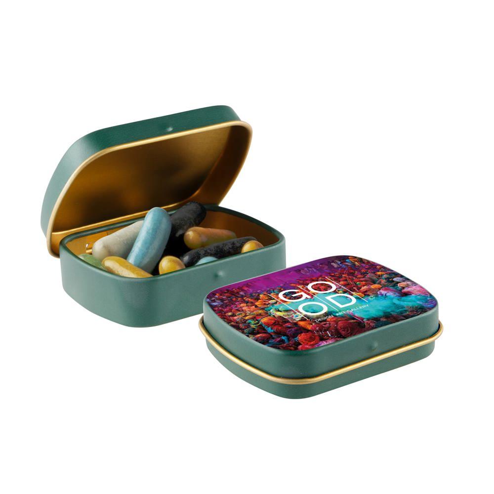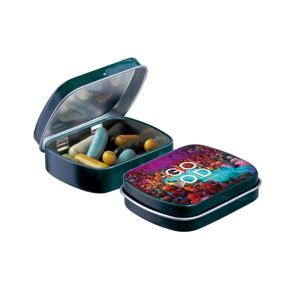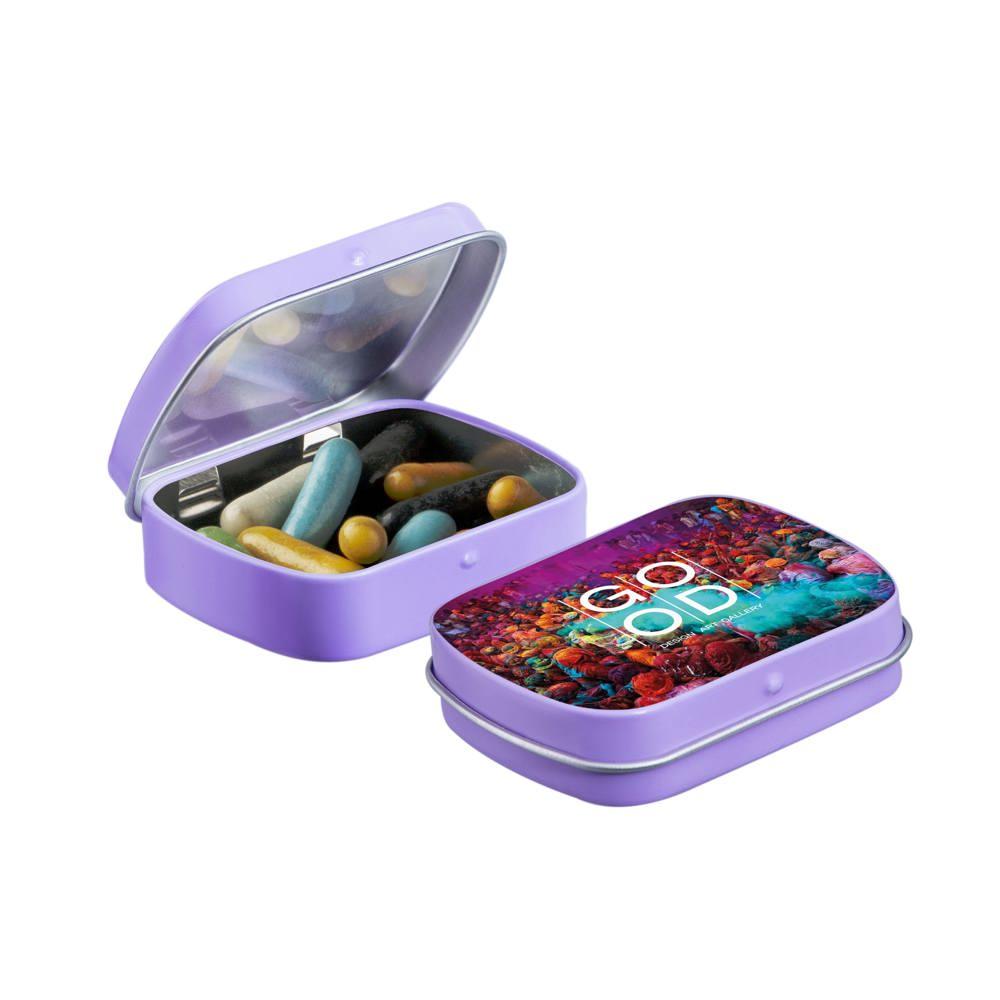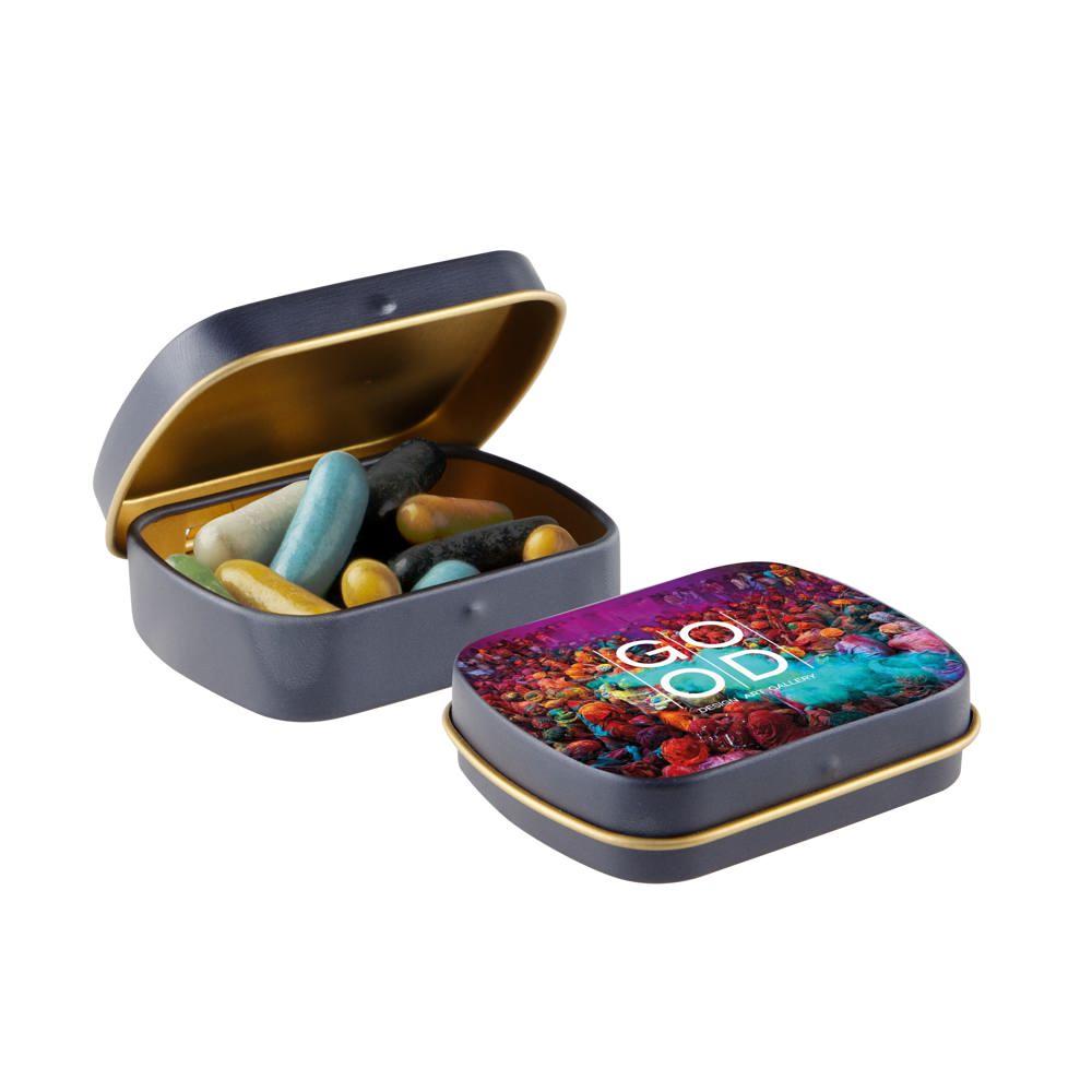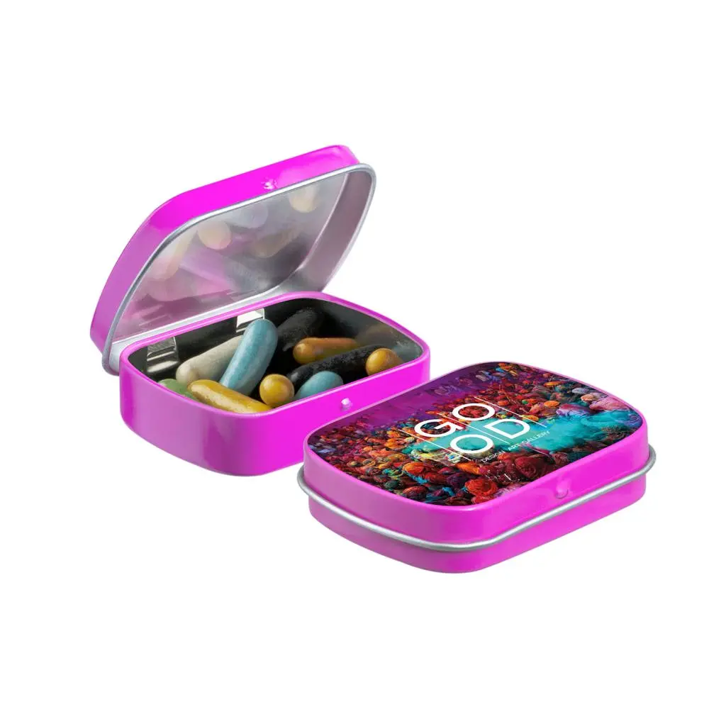 Mini hinge tin with candy