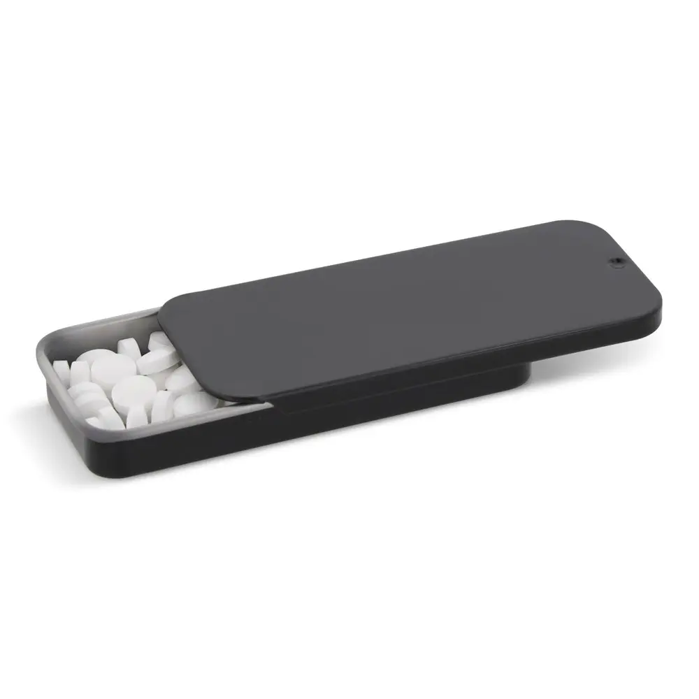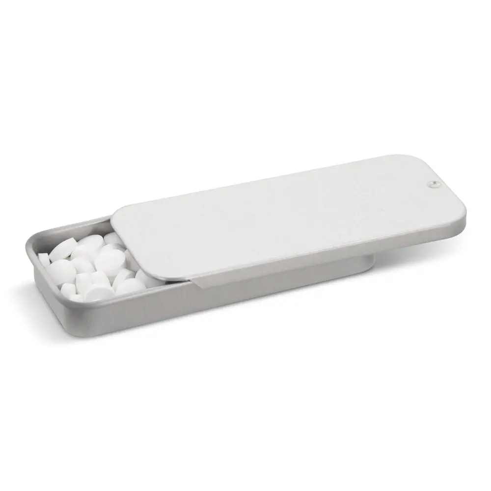 Elevate your brand with personalized Mini Sliding Tin Boxes, filled with invigorating sugarfree peppermints. This sleek, pocket-sized design features a convenient sliding lid for effortless access to a refreshing minty burst on the go – ideal for busy professionals and event attendees.