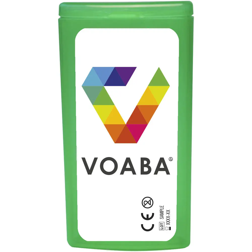 Elevate your brand visibility at festivals and events with the MiniKit Festival Set, a compact and essential travel kit perfect for promotional giveaways. This pocket-sized set (4.9 x 9.7 x 2.5 cm) fits effortlessly into bags, making it ideal for recipients to carry and use on-site.