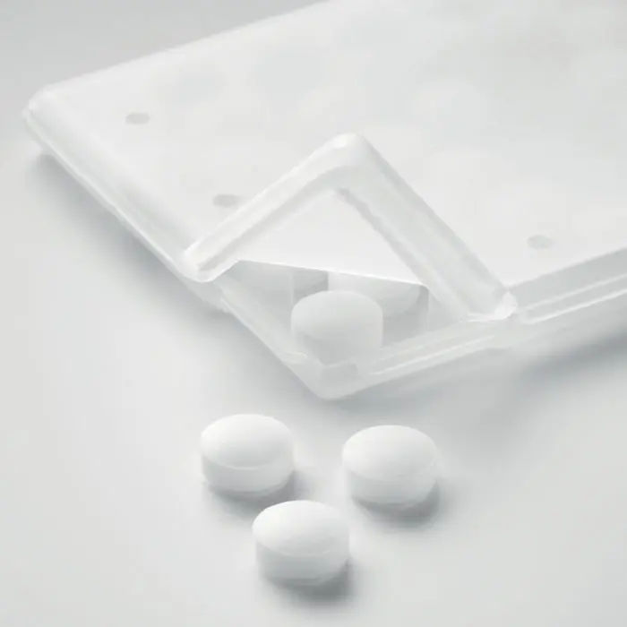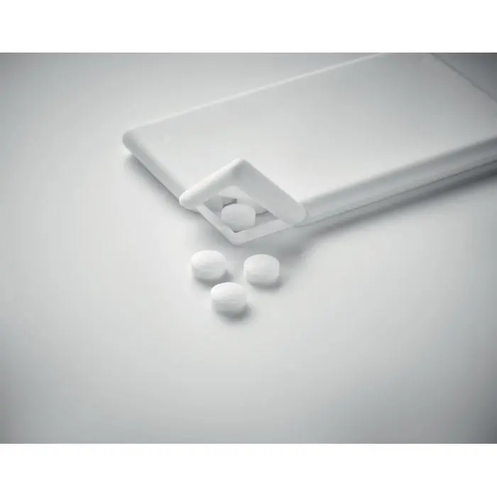 Enhance your promotional efforts with this sleek credit card-sized mint dispenser. Crafted from durable PP material, it holds 8 grams of fresh mints, providing a practical and memorable giveaway for your events or client interactions.