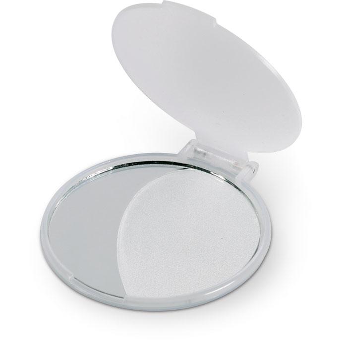 Elevate your brand visibility with the MIRATE personalized make-up mirror, a single-sided compact mirror housed in durable plastic. Ideal for marketing professionals and event organizers, this practical promotional giveaway allows touch-ups on the go, ensuring recipients associate your logo with everyday convenience.