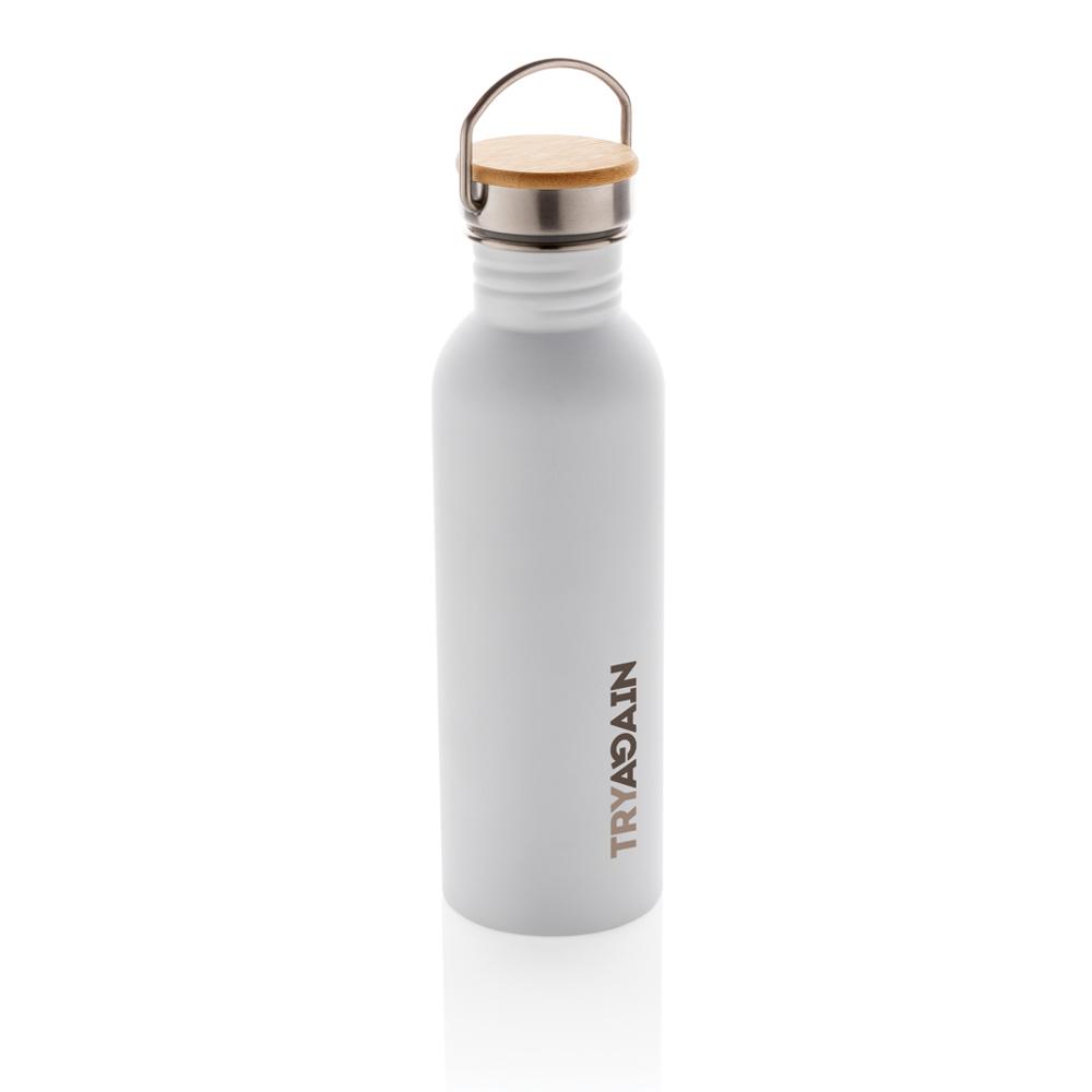 This minimalist single-wall stainless steel bottle offers a generous 710ml capacity, ideal for everyday hydration while showcasing your logo through custom imprinting. Its premium stainless steel lid, accented with genuine bamboo, pairs with a sturdy stainless steel handle for comfortable, on-the-go carrying—perfect for trade shows, client appreciation, or team events.