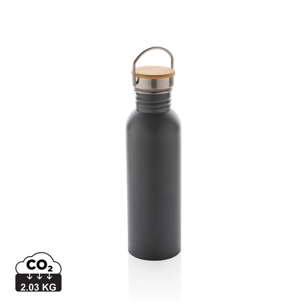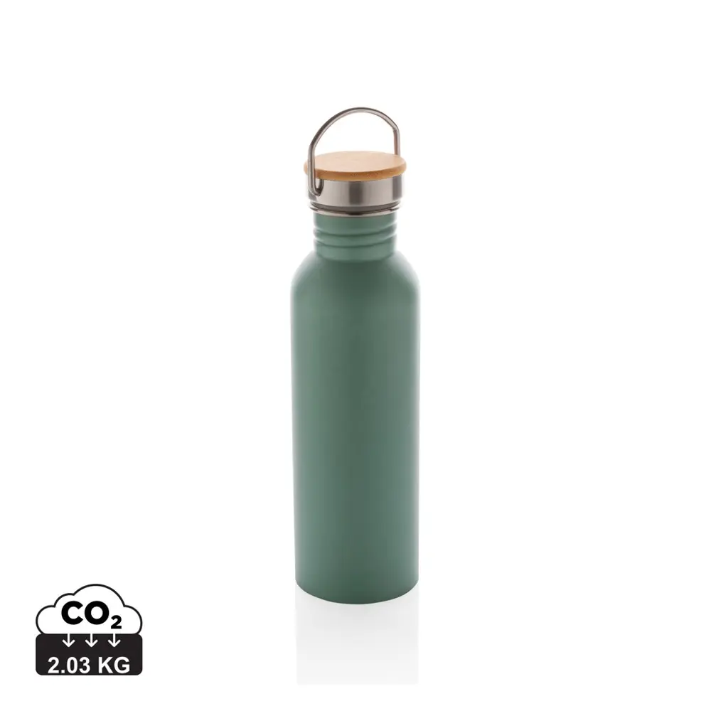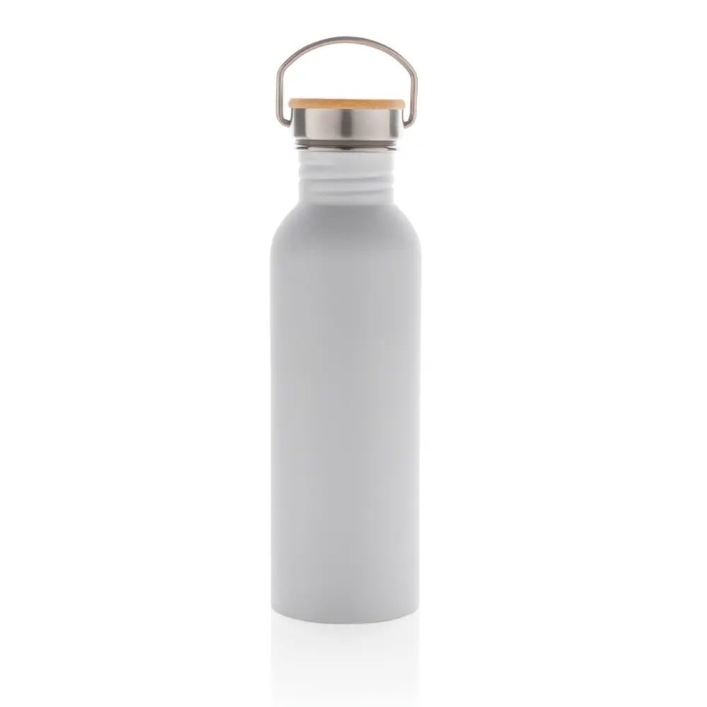 Elevate your promotional efforts with the Modern Bottle with Bamboo Lid, a sleek stainless steel single-wall design that combines simplicity and sustainability. Holding 710ml, this BPA-free bottle features a natural bamboo lid and convenient stainless steel handle for effortless portability—ideal for events, client giveaways, or marketing campaigns.