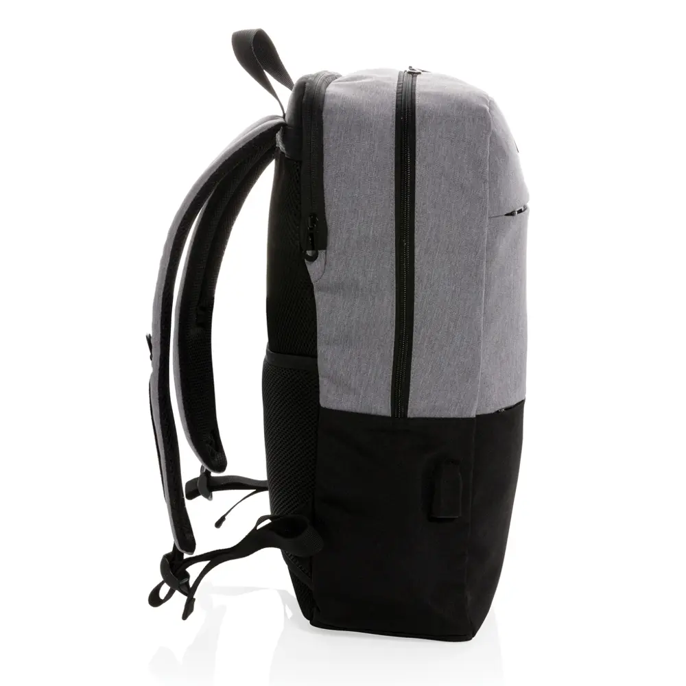 Elevate your brand visibility with the Modern 15.6" USB & RFID Laptop Backpack, perfect for personalized promotional gifts. Crafted from durable polyester, this sleek, urban-inspired design offers 15L capacity to carry laptops, tablets up to 15.6 inches in a fully padded compartment, plus a front pocket for essentials. Stay powered on the go with the integrated USB port for phone charging. Advanced NFC (13.56 MHz) blocking protects sensitive data, ensuring security for tech-savvy recipients. PVC-free and compliant with strict safety standards, it's an eco-conscious choice for events, client giveaways, or corporate branding. Customize with your logo to boost marketing impact and client loyalty.