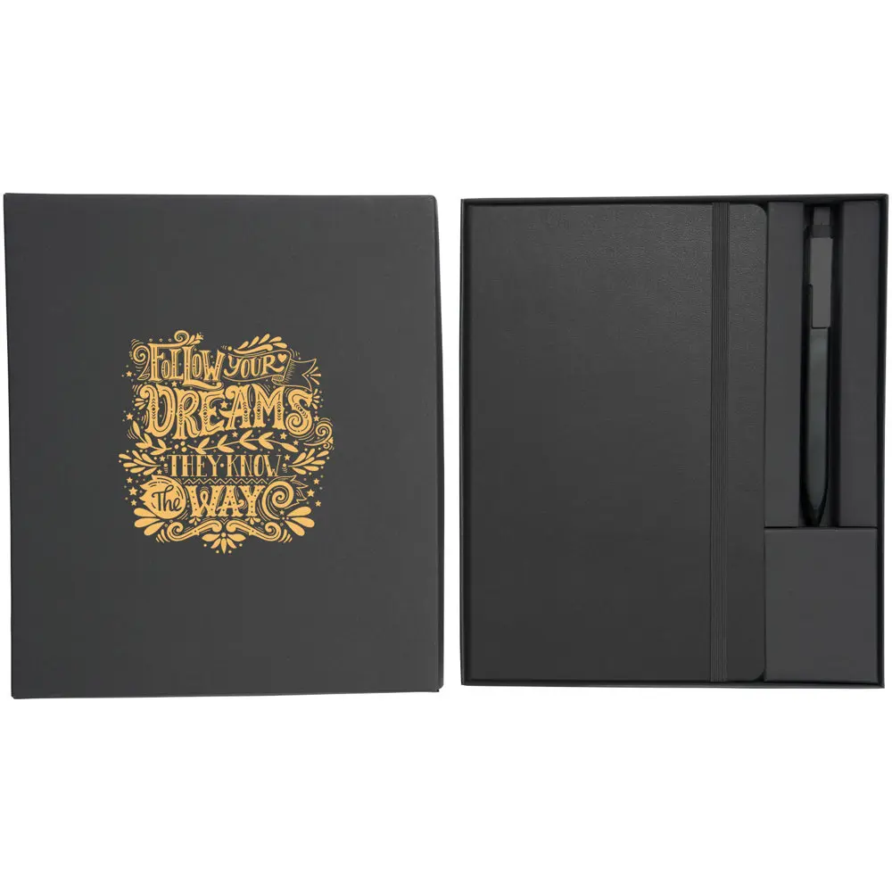 Enhance your promotional efforts with this sophisticated notebook and pen gift set, designed for seamless personalization and logobedrukking. Ideal for marketing professionals and event organizers, this set allows you to create memorable branded giveaways that reinforce your company's image. By adding your logo, you transform these everyday essentials into powerful marketing tools that recipients will use daily, keeping your brand top of mind.