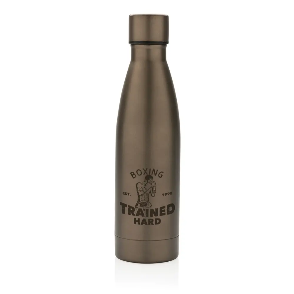 Elevate your brand's eco-commitment with this vacuum bottle crafted from RCS-certified recycled stainless steel. Achieving 93% recycled content based on total weight, it supports a fully verified supply chain under Recycled Claim Standard guidelines. BPA-free and compliant with German Food Safe Legislation, PAHS content in REACH & ZEK 01-4-08, phthalate content, and free from short- and medium-chain chlorinated paraffins, this 500ml bottle ensures safe, sustainable gifting for your promotional needs.