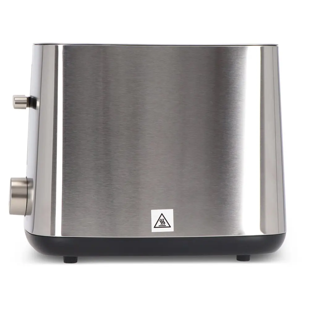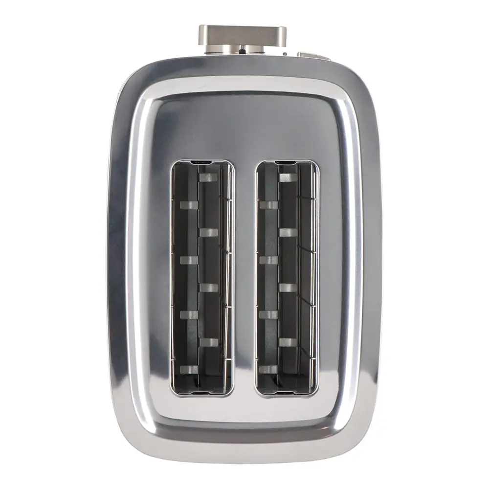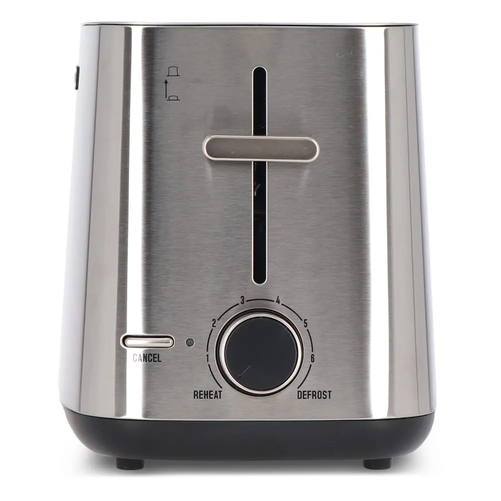 Crafted from durable stainless steel, this two-slice toaster delivers consistent performance for busy mornings or quick snacks. Six adjustable browning settings provide precise control, while the centering guide ensures even toasting for any bread thickness. Additional conveniences include a slide-out crumb tray for effortless cleanup, an illuminated switch for easy monitoring, and an auto-stop safety feature. Versatile functions like cancel, defrost, and reheat add flexibility, with practical cord storage to keep workspaces tidy.