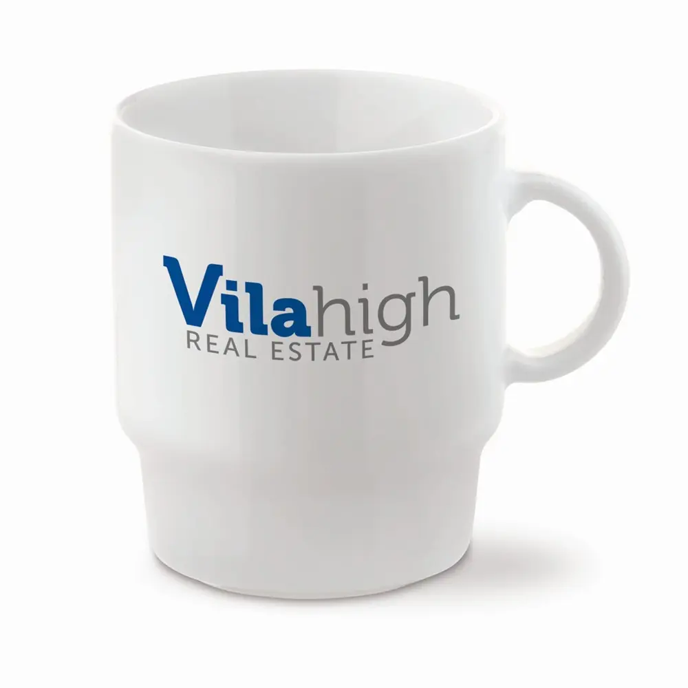 Discover the elegant Satellite 250ml mug, crafted from high-quality porcelain in Europe. This stackable design ensures easy storage and complements the smaller 180ml version, creating versatile sets for your promotional needs.