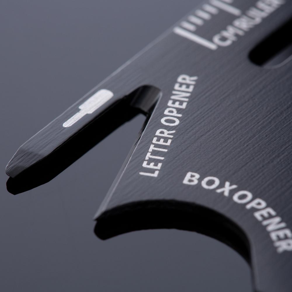Crafted from durable stainless steel, it packs 8 essential functions into one slim profile: bottle opener, can opener, ruler, screwdriver, hex key, protractor, package opener, and wingnut driver. Ideal for everyday fixes, travel, and outdoor activities, it equips recipients while subtly promoting your brand.