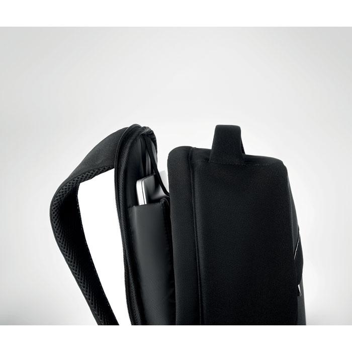 Elevate your brand with the MUNICH 600D RPET Backpack, a sustainable choice made from recycled polyester for eco-conscious promotional campaigns.