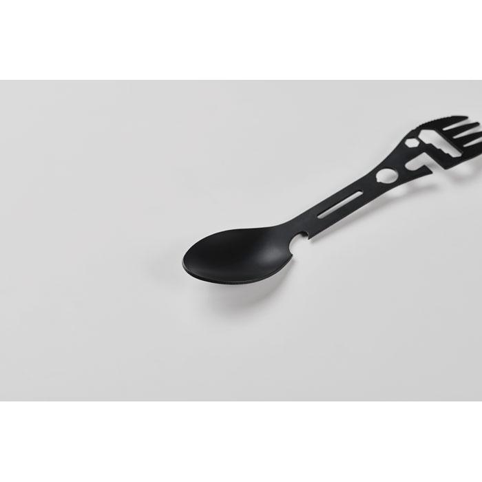 MUTOOL Stainless Steel Multi Tool – the ultimate promotional giveaway for marketing professionals and event organizers. This versatile stainless steel multi tool combines essential cutlery like a spoon and fork with practical features including an adjustable wrench, bottle opener, hex key, serrated knife, opener, and positioning wrench.