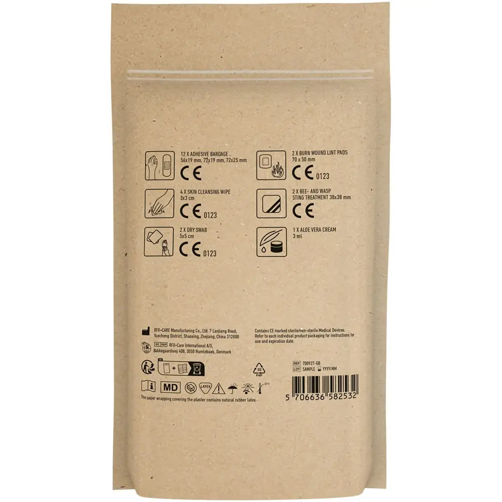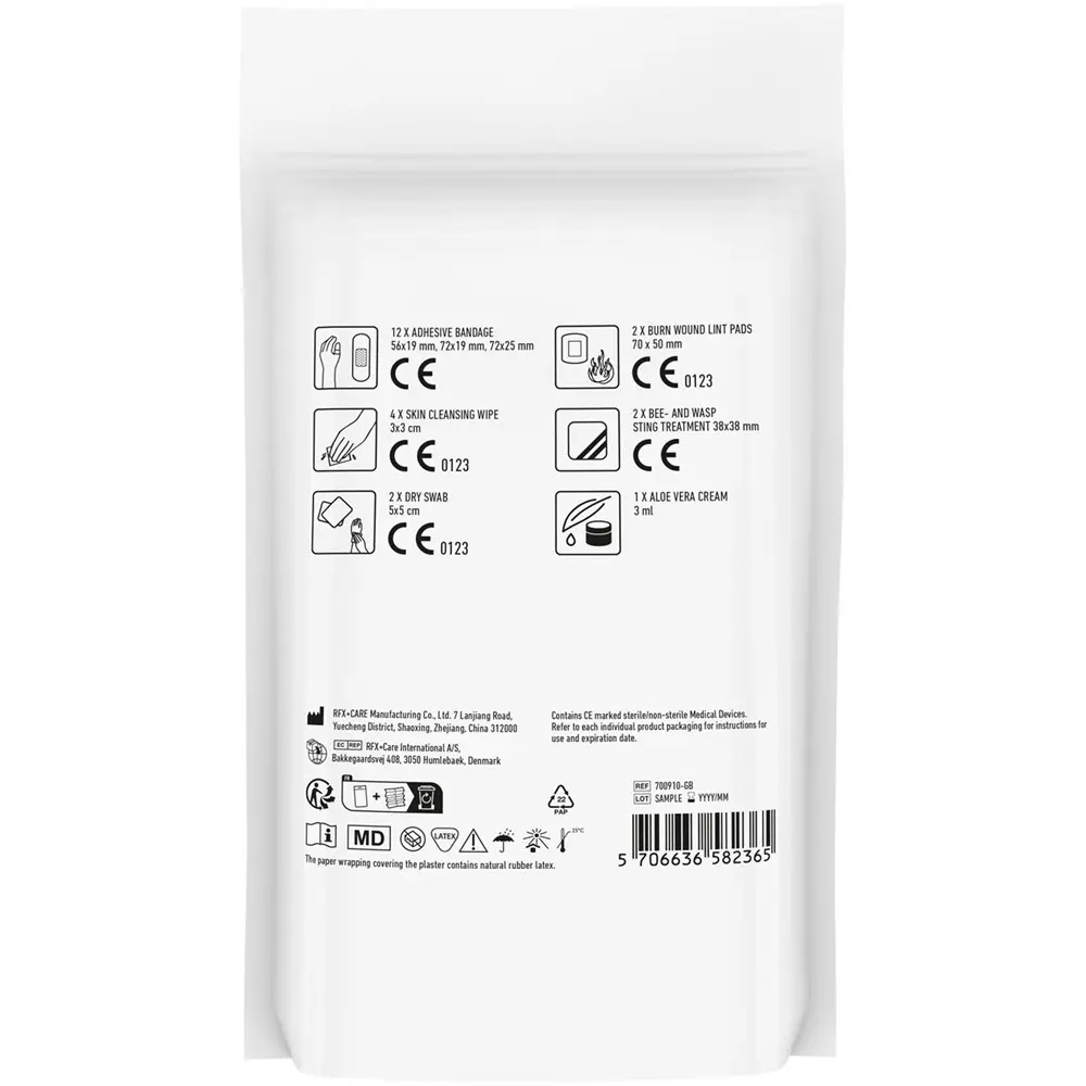Equip your summer events or client outreach with the MyKit Bites & Stings First Aid Kit, a compact and practical promotional giveaway perfect for branding. This essential kit helps prevent and treat insect bites and stings on the go, ensuring your recipients feel cared for during outdoor activities. Inside the FSC-certified paper pouch (12 x 20.9 x 2.8 cm), you'll find 12 wash-proof plasters, 4 skin cleansing swabs, 2 dry swabs, 2 burn wound lint pads, 1 bee patch, and 1 Aloe Vera cream—all compliant with EU regulations for safe, reliable use.