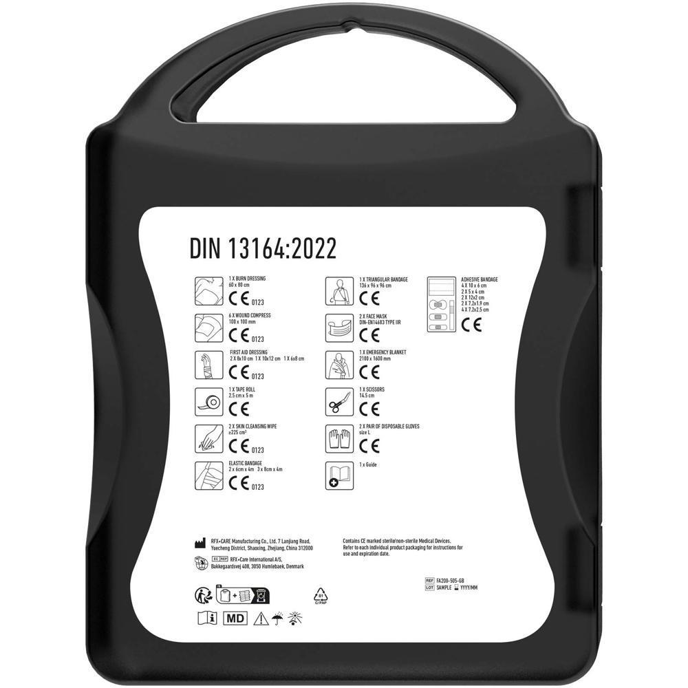 Elevate your brand with the personalized MyKit DIN first aid kit, DIN-approved and essential for every vehicle. This comprehensive, compact kit equips businesses, event organizers, and marketing teams with a practical promotional giveaway that prioritizes safety and showcases your full-color logo imprint for lasting visibility.