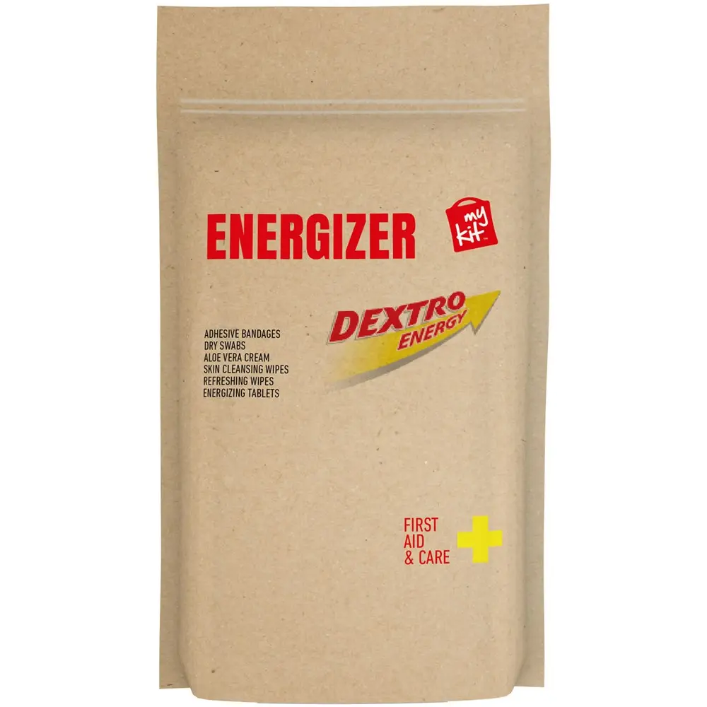 Elevate your event giveaways with the MyKit Energiser Set in a sustainable paper pouch. This compact first aid and refresh kit (12 x 20.9 x 2.8 cm) is perfect for marketing professionals and event organizers seeking personalized promotional items. Made from FSC-certified paper and produced in Europe, it supports eco-friendly branding.