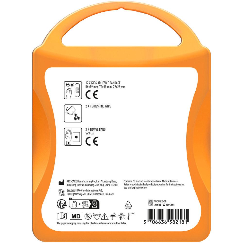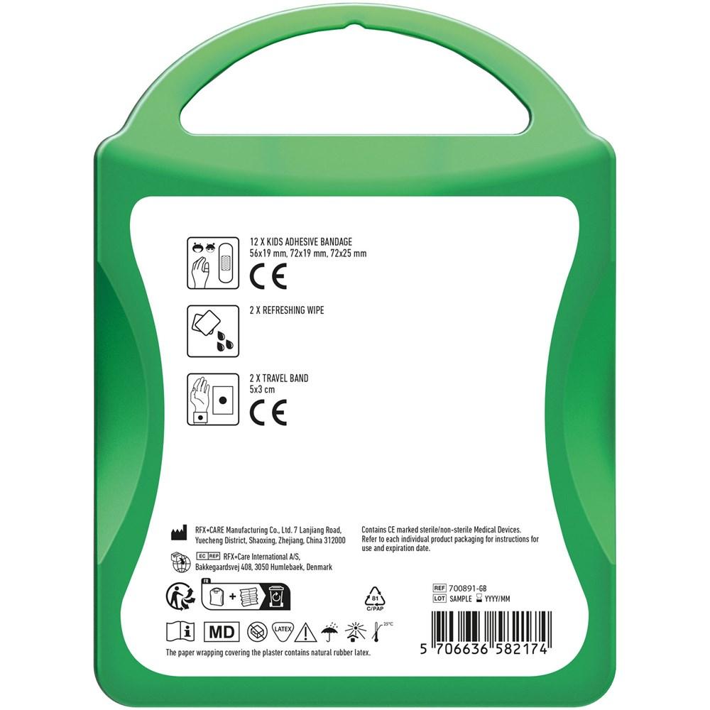 Elevate your brand visibility with the personalized MyKit Kids Travel Set, the perfect promotional giveaway for marketing campaigns, events, and corporate gifting. This compact kit equips families on the go with essential items for basic wound care and motion sickness relief, including 12 kid-sized plasters, 2 refreshing wipes, and 2 effective travel bands.