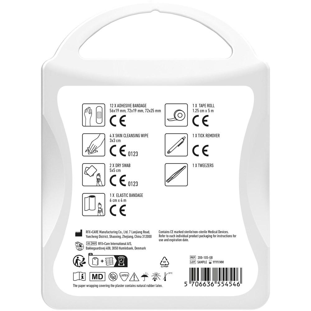 This compact kit equips pet owners for everyday emergencies, including minor injuries from walks or tick bites. It contains 12 wash-proof plasters, 4 skin cleansing swabs, 2 dry swabs, 1 tick remover, 1 elastic bandage, 1 tweezer, and 1 tape roll—all compliant with EU regulations for safety and quality.