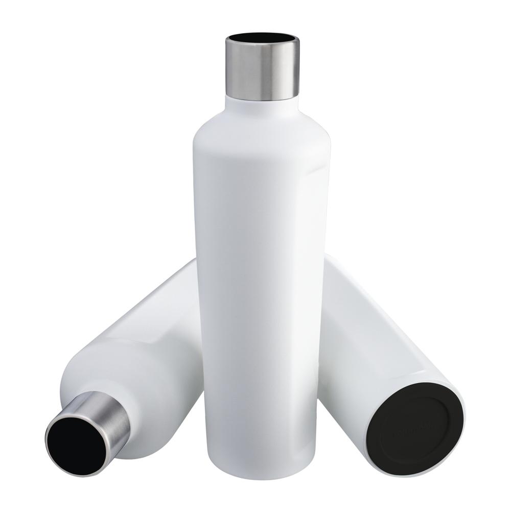 Crafted with high-quality micro powder coating, a changeable TPR rubber bottom for stability, and dishwasher-safe construction, it's built to withstand daily use while accommodating carbonated beverages. Assembled in Germany for unmatched durability and precision, this versatile thermo bottle combines functionality with eye-catching design elements like a silicone lid accent, ensuring your branded gifts leave a lasting impression and drive customer loyalty.