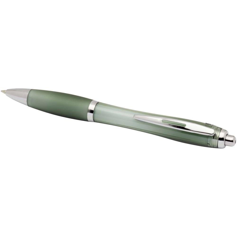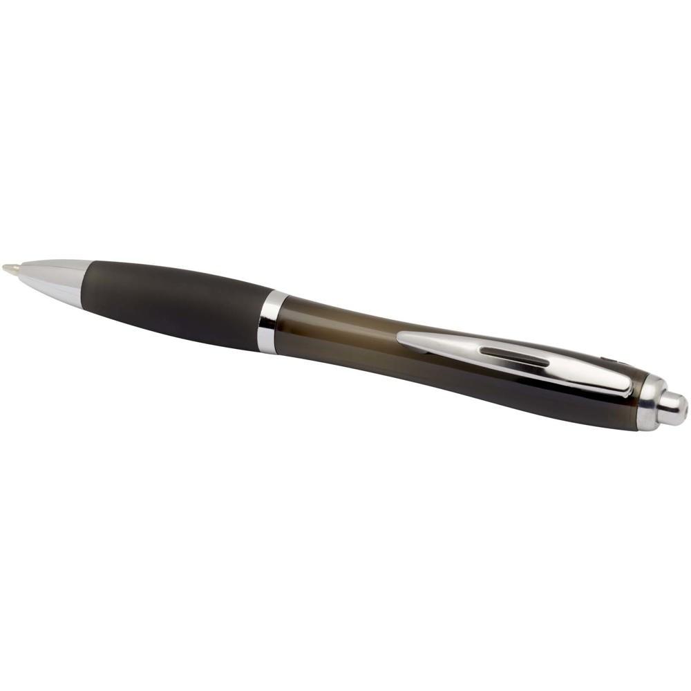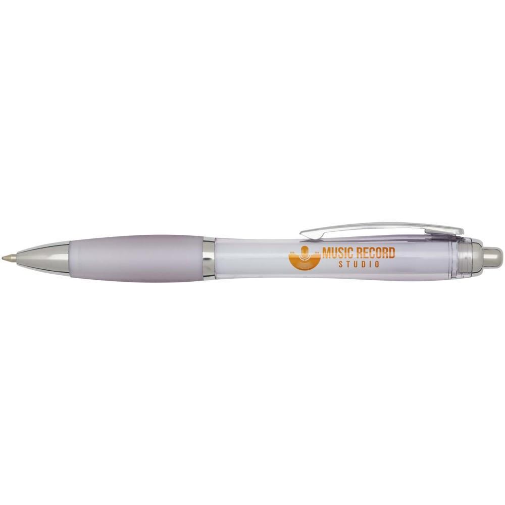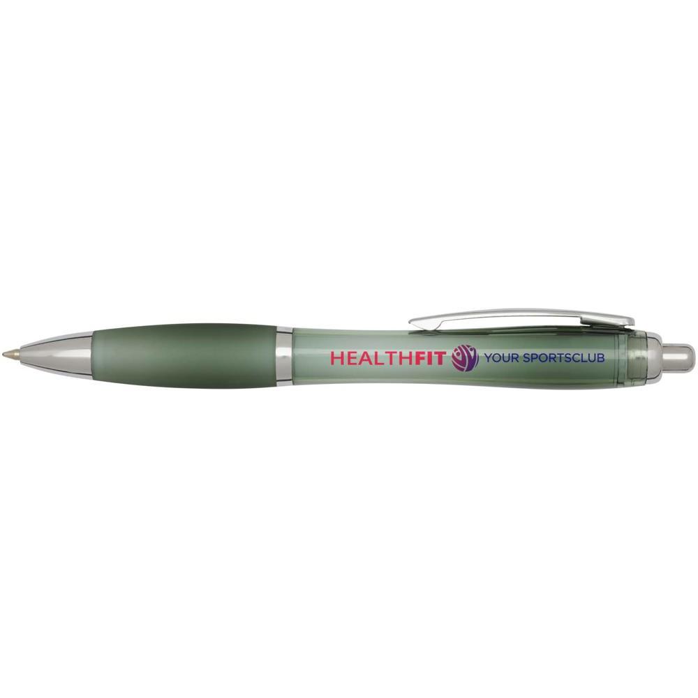 Elevate your brand with the Nash recycled ballpoint pen, a stylish curvy design perfect for promotional giveaways. Featuring a transparent barrel with silver trims and a soft matching grip, it ensures comfortable, smooth writing every time.