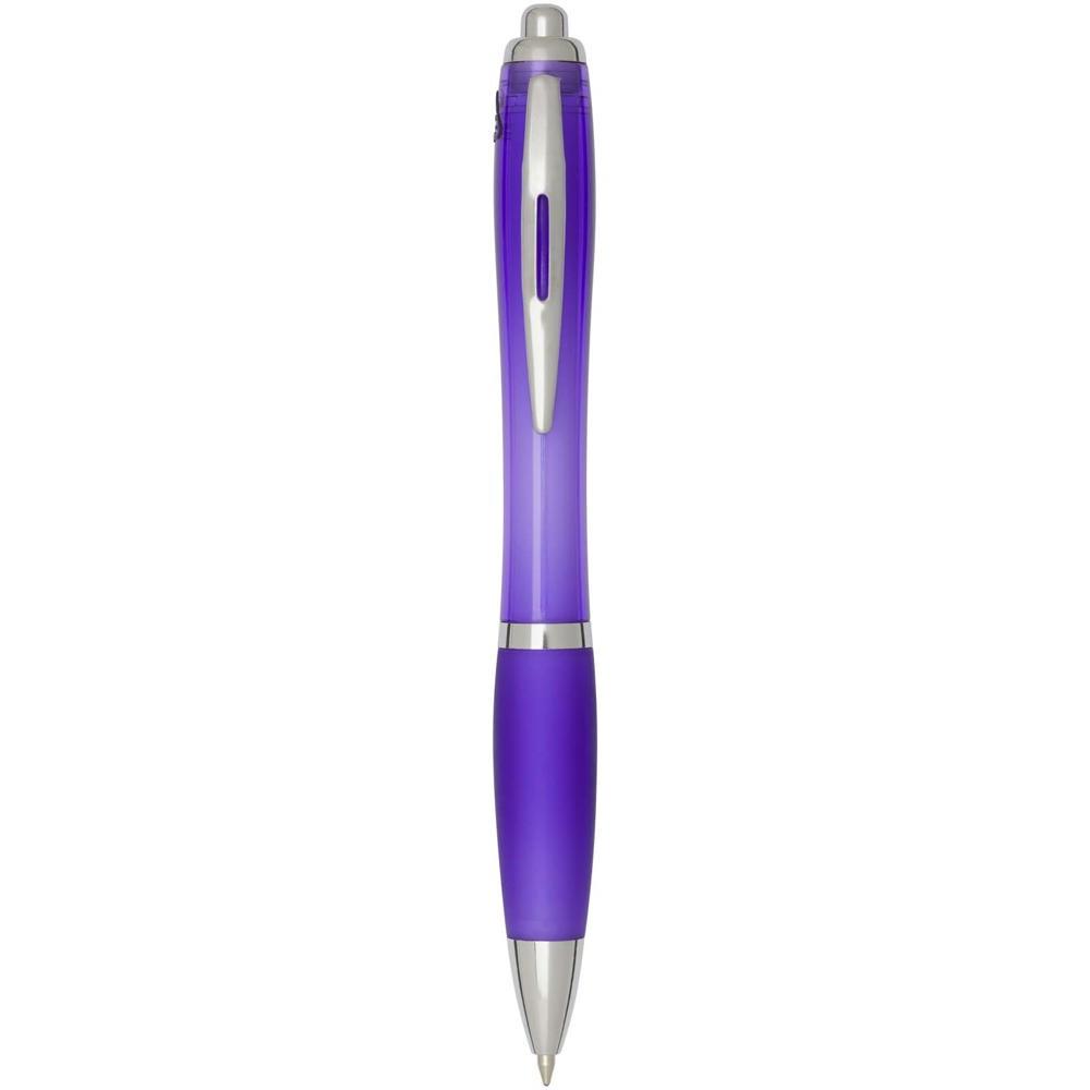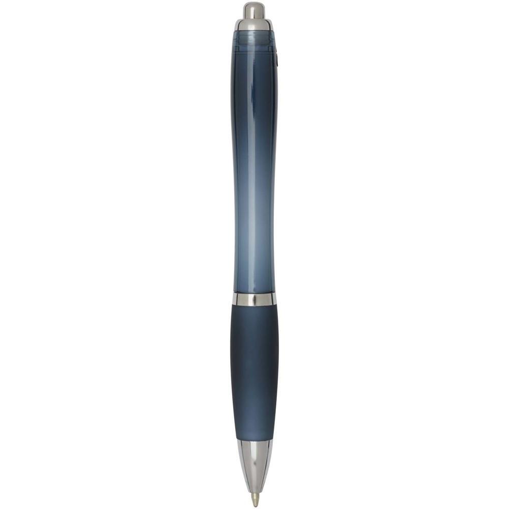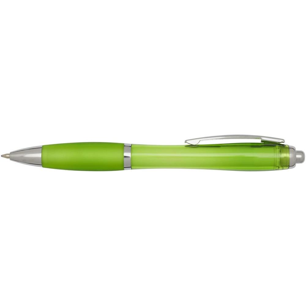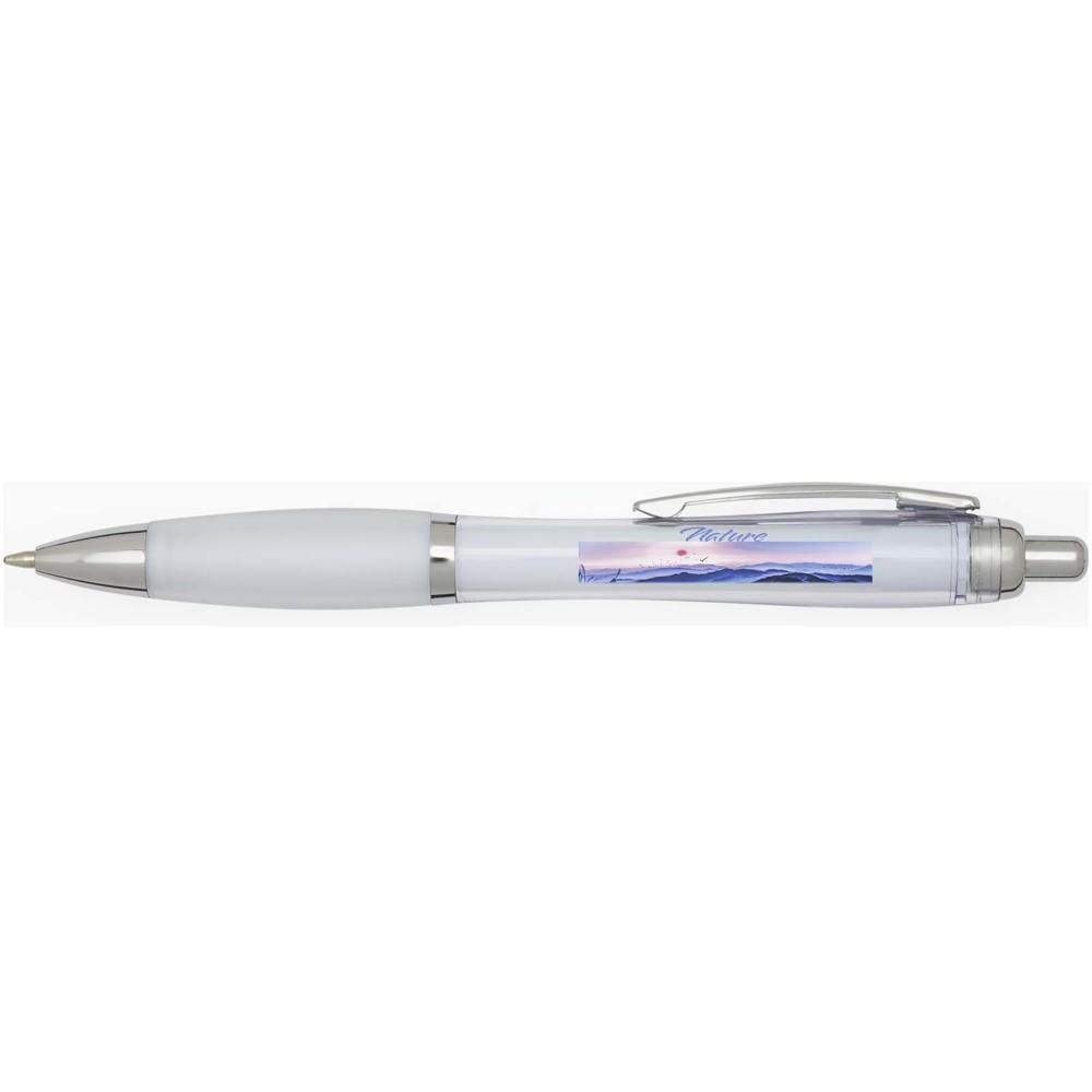 Elevate your brand with the Nash recycled ballpoint pen, a stylish curvy design perfect for promotional giveaways. Featuring a transparent barrel with silver trims and a soft matching grip, it ensures comfortable, smooth writing every time.