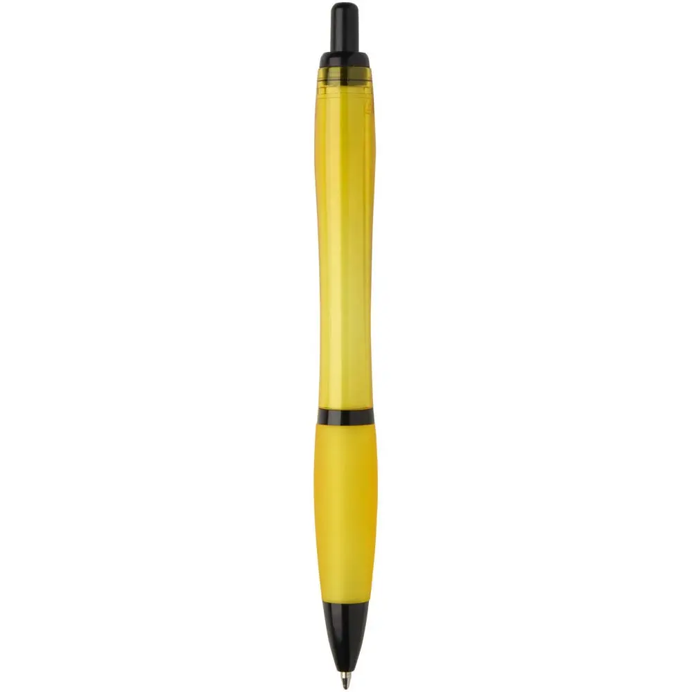 Elevate your branding with this curvy ballpoint pen featuring sleek trims. Its ergonomic shape ensures comfortable handling, making it ideal for everyday promotional distribution at events or client meetings.