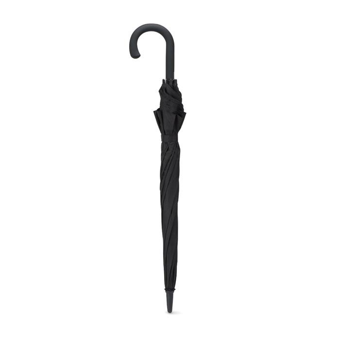 Crafted from durable 190T pongee fabric, it withstands strong winds thanks to its reinforced metal shaft, fiberglass ribs, and sturdy plastic tips—ensuring reliability in any weather. The ergonomic curved rubberised ABS handle with integrated button provides comfortable grip, even during extended use.