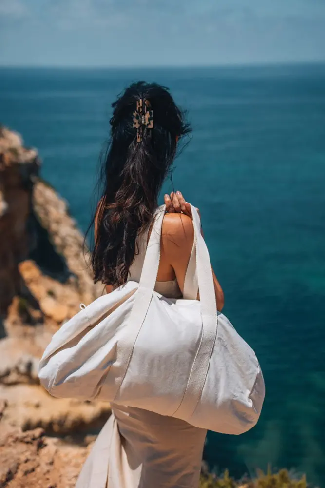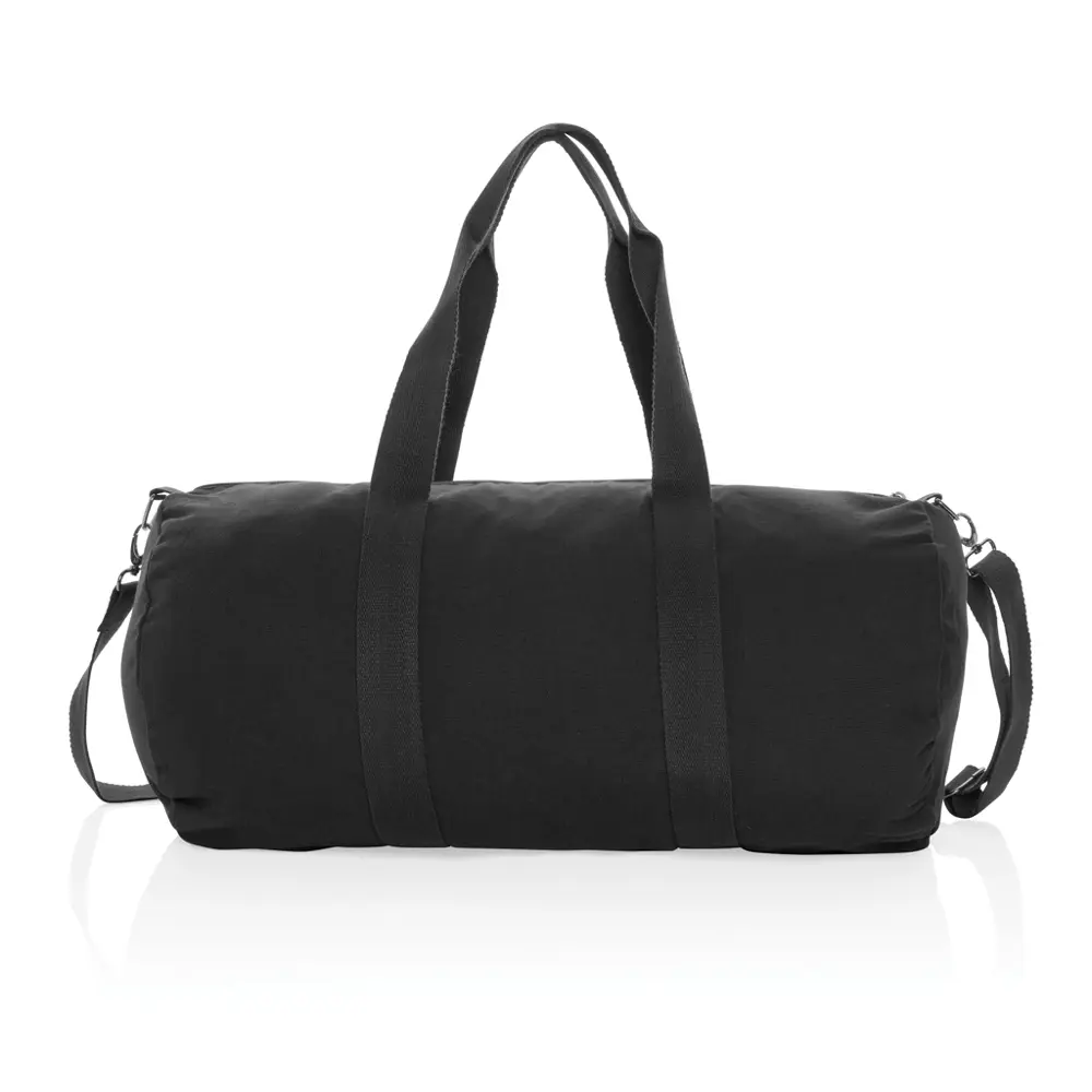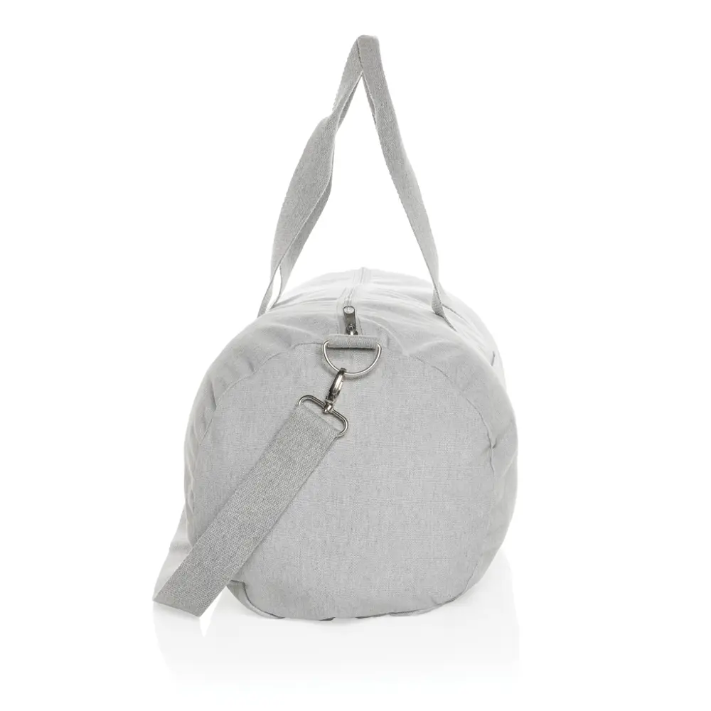 Elevate your brand's sustainability efforts with the Nopa Duffle Bag - 285 g/m², a versatile 40L recycled canvas essential for short trips and promotional giveaways. Crafted from 70% recycled cotton and 30% recycled polyester in its raw, undyed form, this PVC-free bag avoids harmful chemicals from dyeing or bleaching, ensuring eco-conscious quality validated by the AWARE™ tracer.
