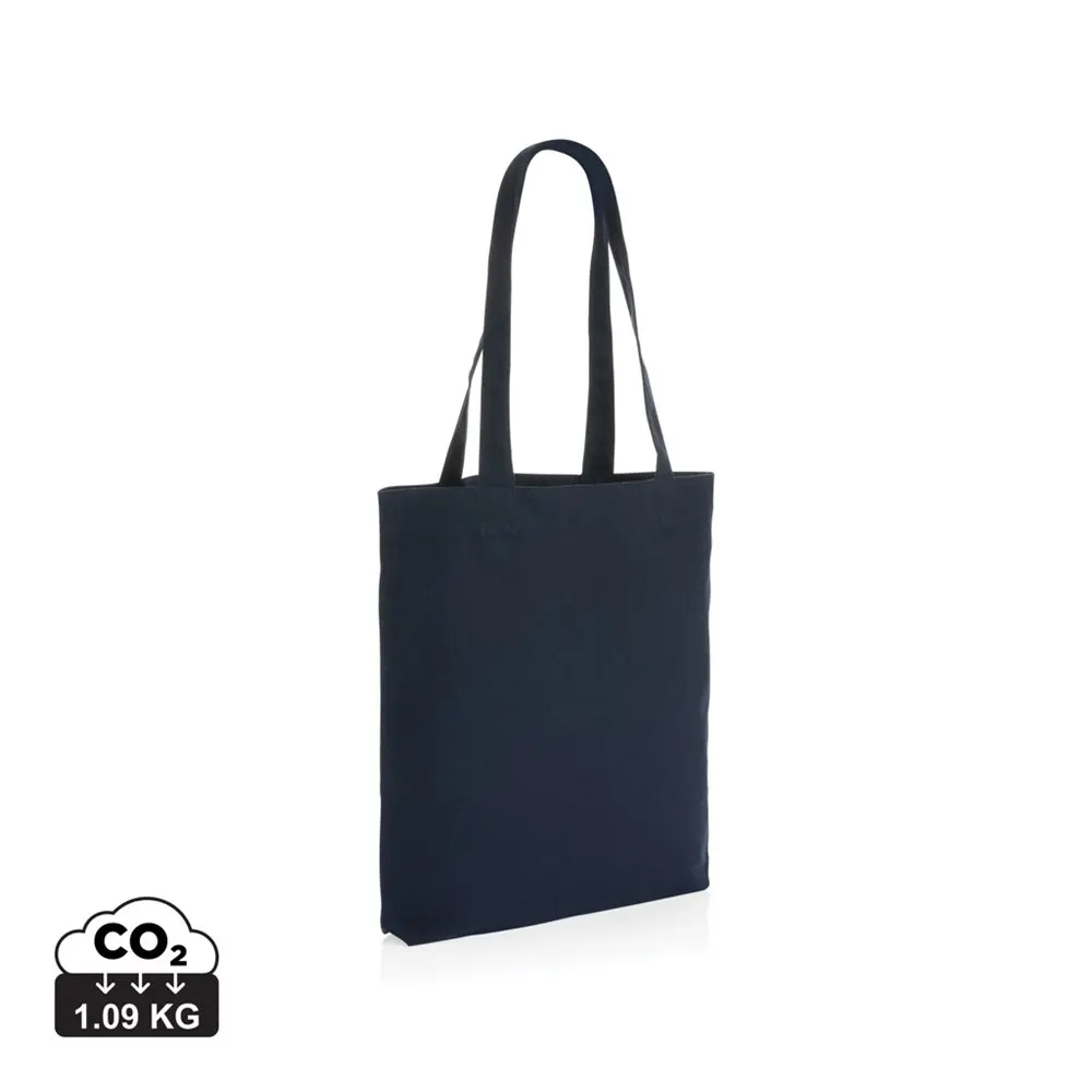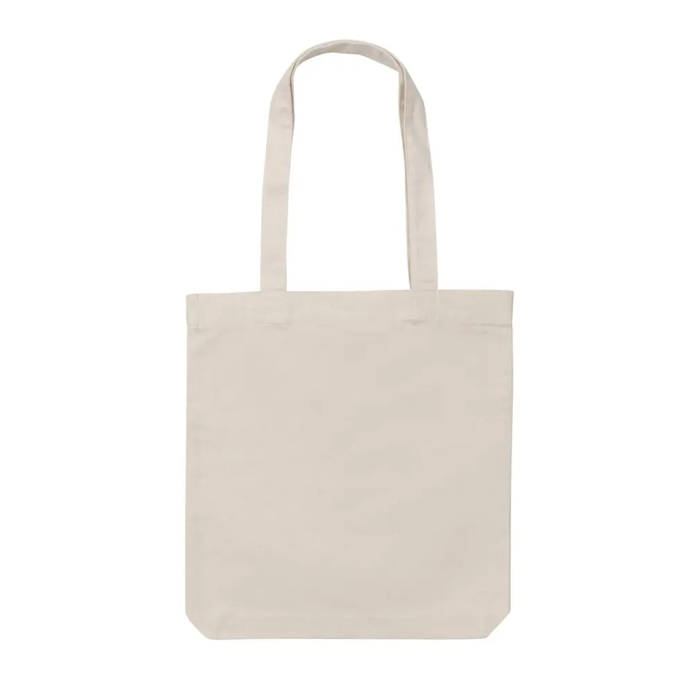 This spacious tote measures 370 x 380 x 60 mm and offers 11 liters of capacity, making it ideal for carrying daily essentials like laptops, groceries, or promotional materials. The 285 g/m² recycled canvas provides durability and structure, with a reinforced bottom to prevent sagging under weight. Made from 70% recycled cotton and 30% polyester, it's undyed to maintain its raw, natural form—free from harmful chemicals used in dyeing or bleaching processes.