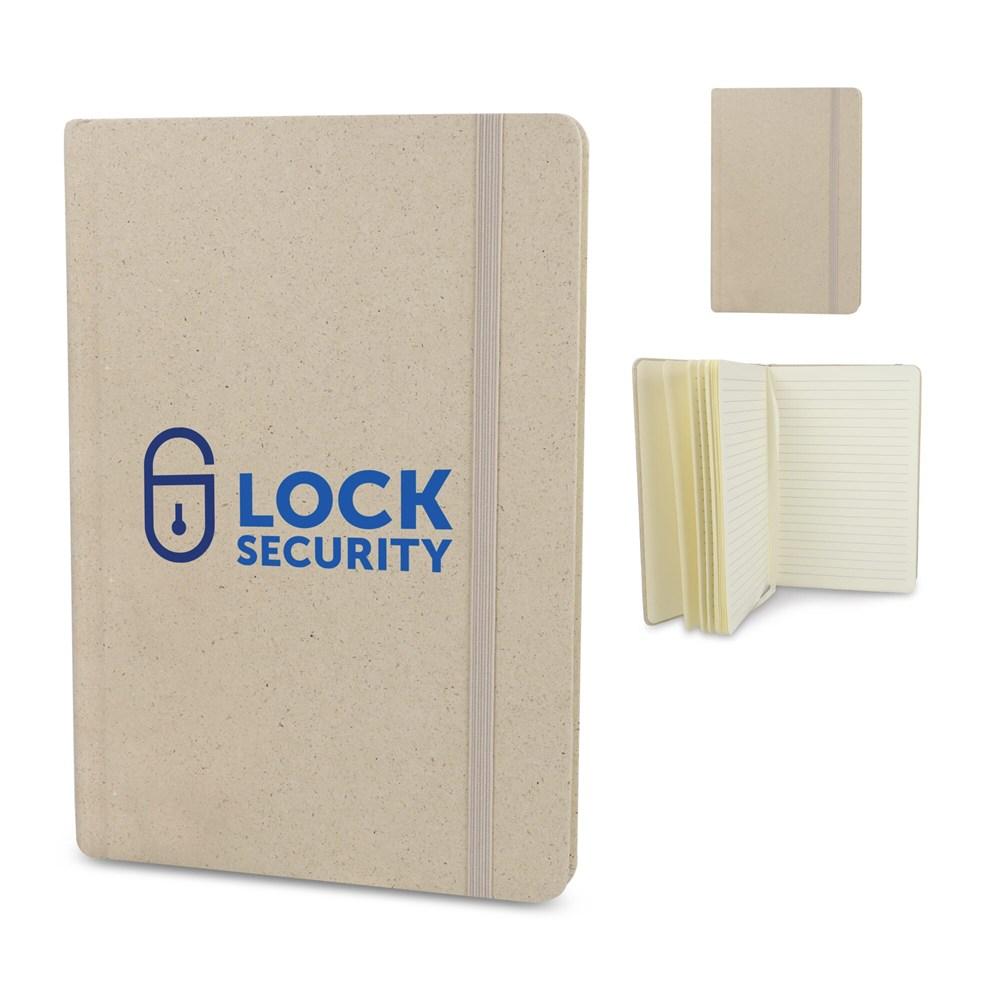 Elevate your brand with this eco-friendly A5 notebook, perfect for corporate giveaways, events, and promotional campaigns. Crafted from innovative grass fragment paper, it appeals to environmentally conscious clients while showcasing your commitment to sustainability.