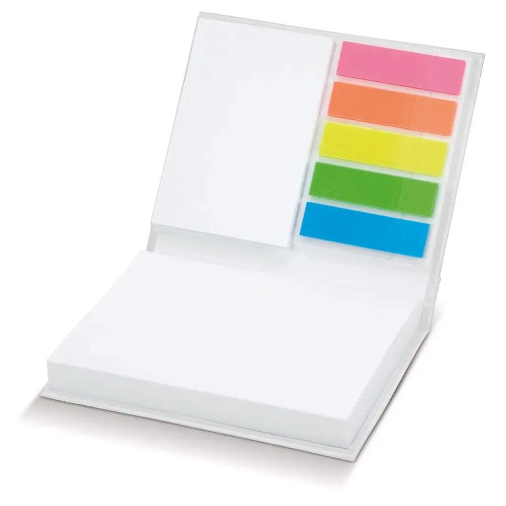 Elevate your branding with this versatile promotional notebook, featuring a sturdy hardcover for professional appeal. Ideal for marketing campaigns and events, it includes 100 large adhesive notes (100x75mm) for detailed reminders, 25 small adhesive notes (50x75mm) for quick jots, and 25 sheets of page markers in five shades for easy organization.
