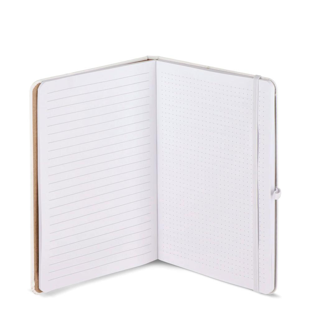 Elevate your promotional giveaways with this customizable A5 notebook, ideal for logo imprinting and bulk orders. Featuring 96 sheets of 100% recycled paper—front side with dot grid for creative planning, back side lined for precise notes—this notebook offers unmatched versatility for marketing teams and event organizers.